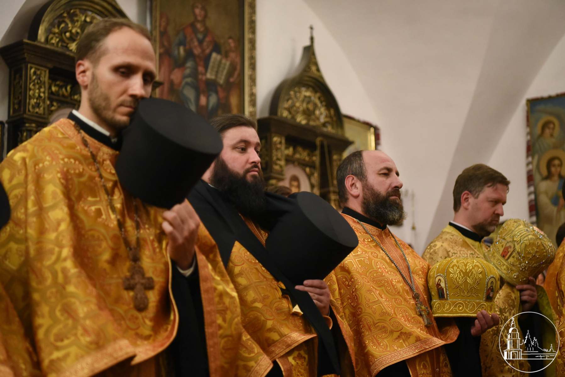 Його Блаженству співслужили Архієпископ Чернігівський і Ніжинський Євстратій, архієпископ Чернівецький і Хотинський Герман; намісник монастиря архієпископ Вишгородський Агапіт; ректор КПБА, професор протоієрей Олександр Трофимлюк; проректор із наукової роботи КПБА, професор протоієрей Віталій Клос; декан КПБА, доцент протоієрей Ярослав Романчук; учений секретар КПБА, доцент протоієрей Сергій Колот; доцент протоієрей Леонтій Никитенко; доцент протоієрей Павло Мельник та інші викладачі КПБА у священному сані; ректори та представники інших вищих духовних навчальних закладів Православної Церкви України, братія монастиря, запрошене духовенство.