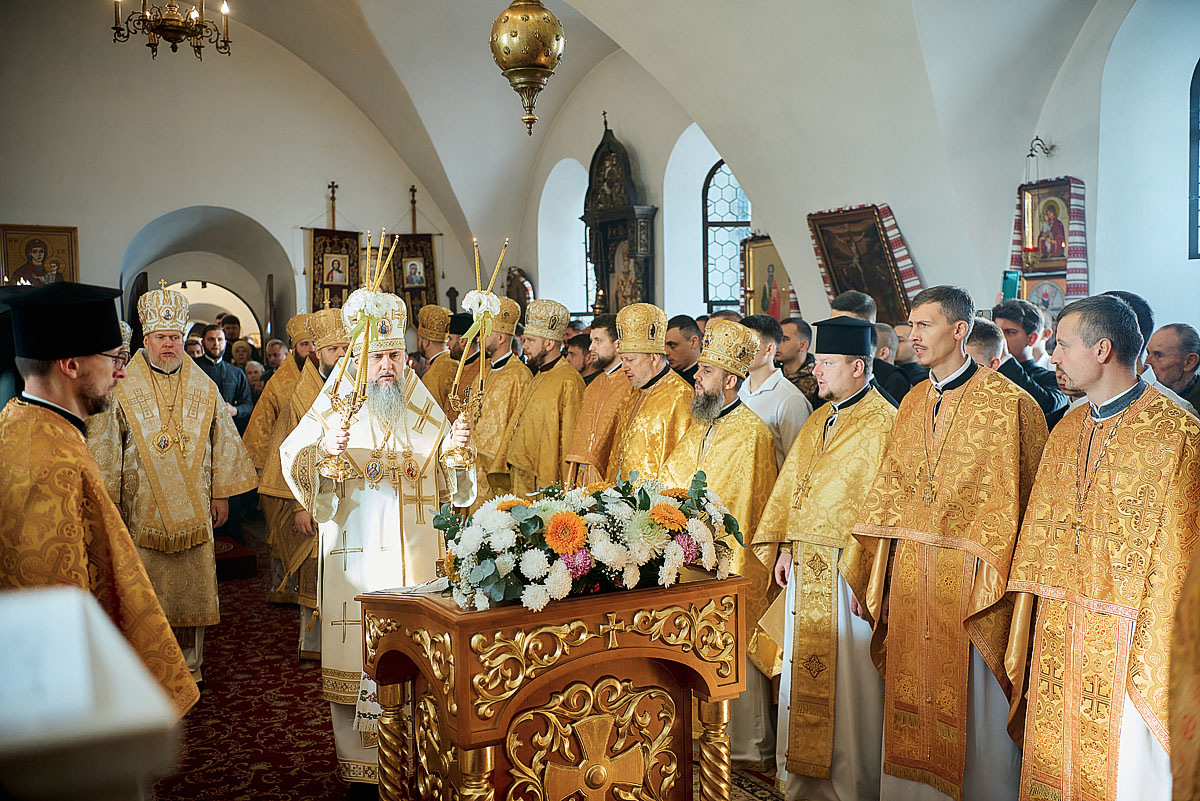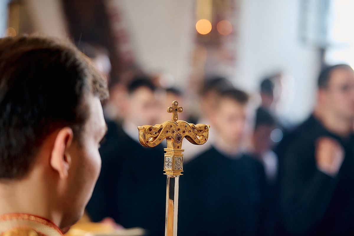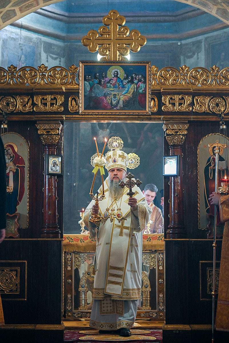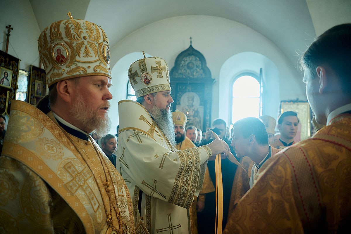 Під час малого входу Митрополит Епіфаній відзначив викладачів академії, що в сані, черговими богослужбовими нагородами. Завершилася відправа хресним ходом, після якого Предстоятель звернувся до вірних зі своїм першосвятительським словом.