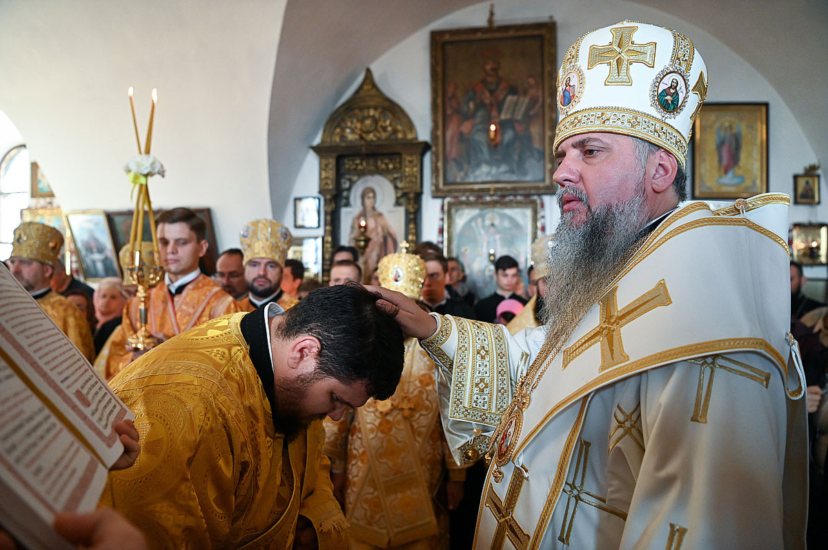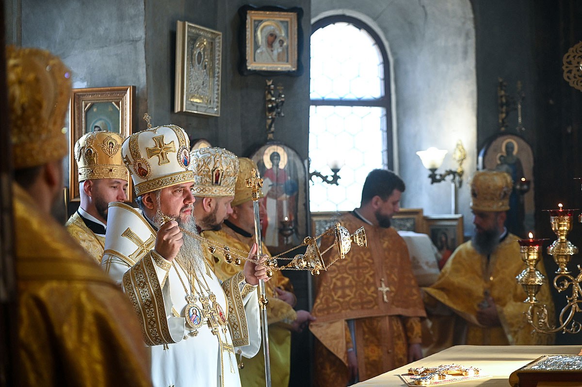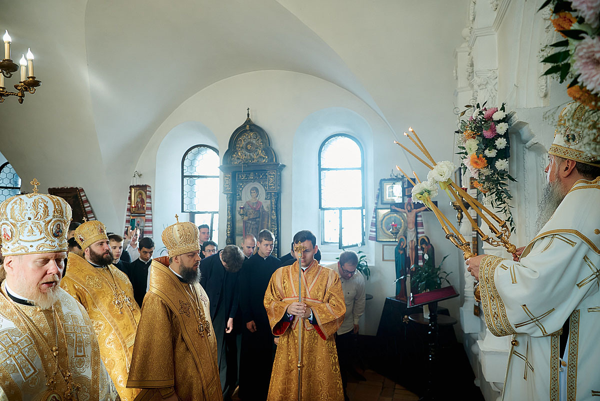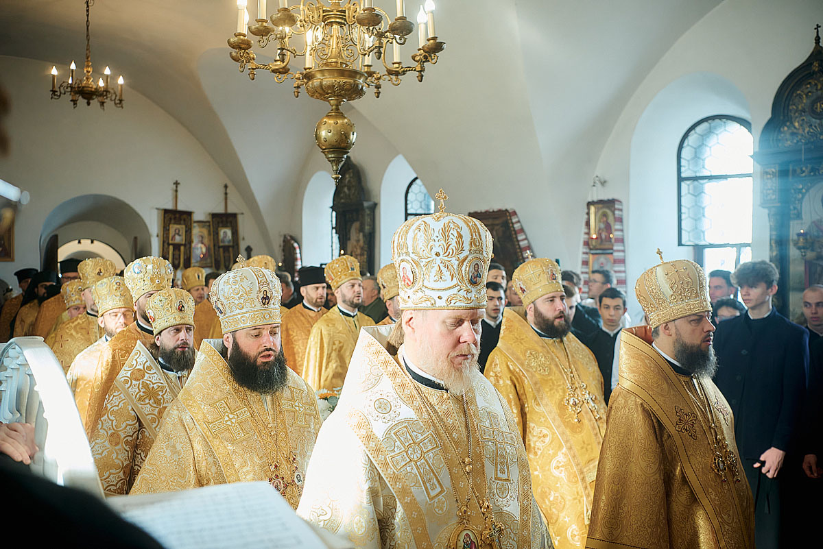 Його Блаженству співслужили митрополит Білоцерківський Євстратій, архієпископ Вишгородський Агапіт, єпископ Чернівецький і Буковинський Феогност, єпископ Васильківський Єфрем, єпископ Бориспільський Авраамій, а також представники духовенства – голова Управління духовної освіти і богословської науки протоієрей Олександр Трофимлюк, ректор КПБА протоієрей Ярослав Романчук, ректори духовних закладів та викладачі академії.