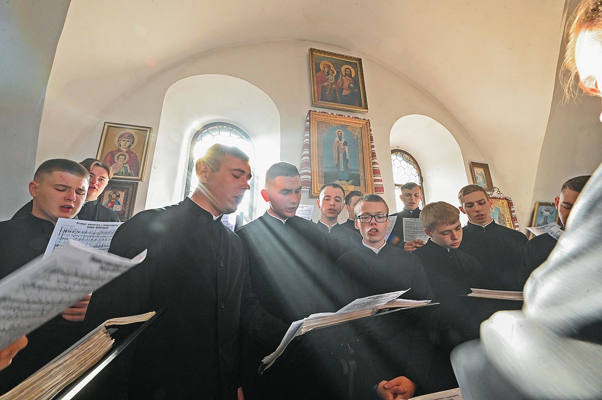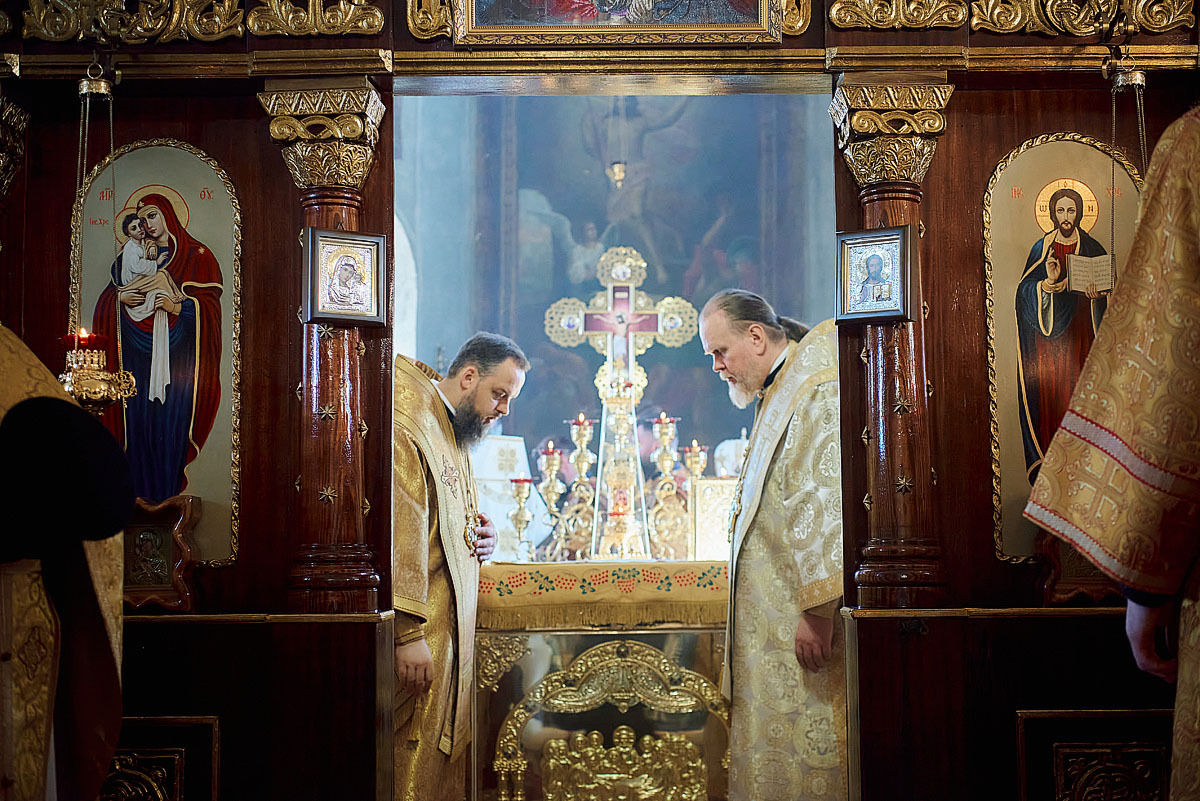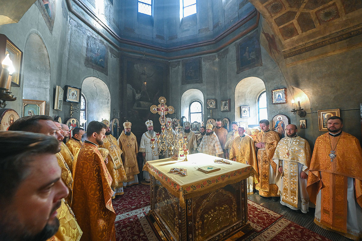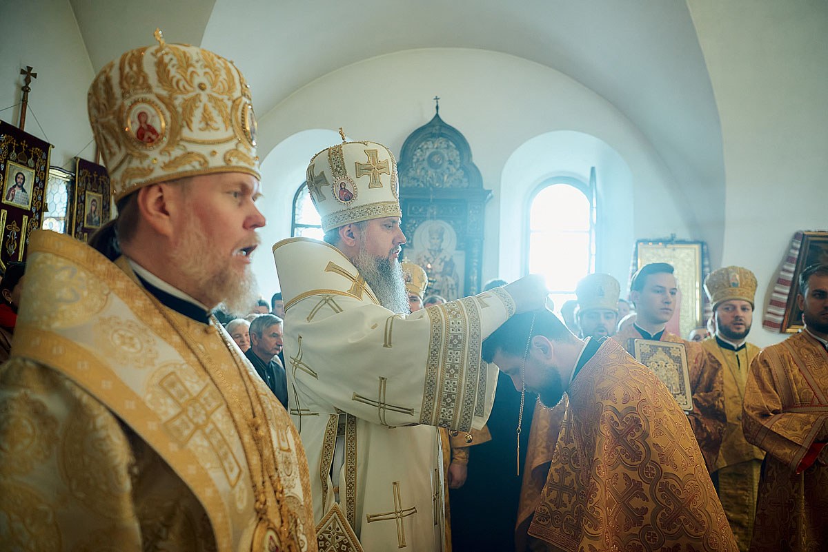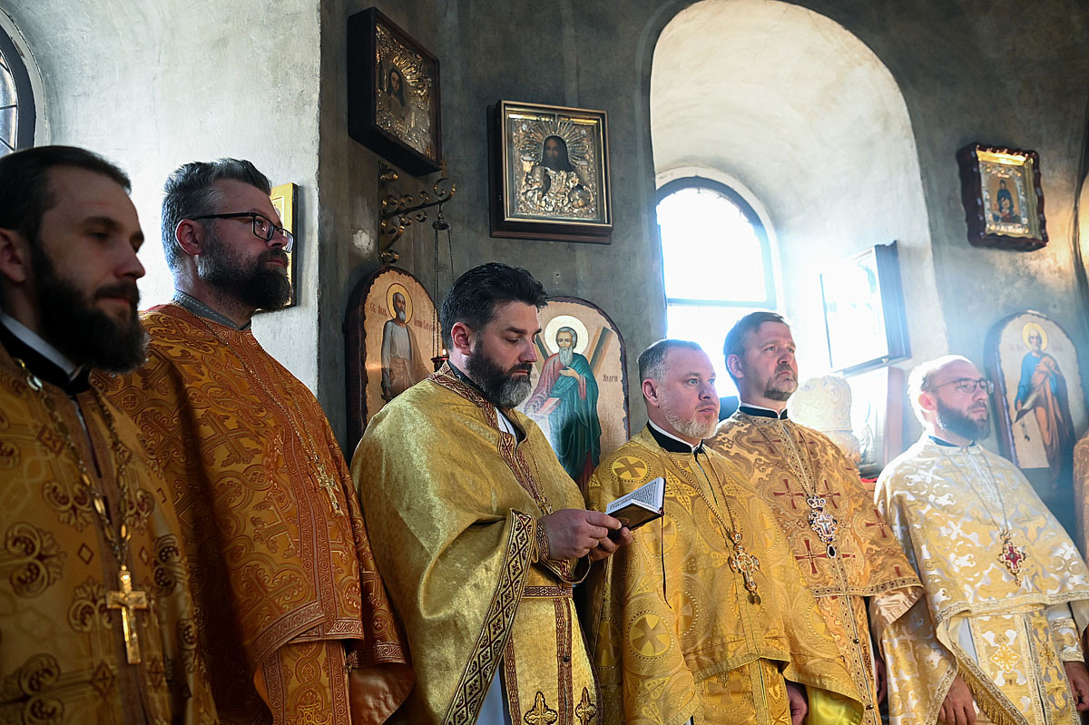 Його Блаженству співслужили митрополит Білоцерківський Євстратій, архієпископ Вишгородський Агапіт, єпископ Чернівецький і Буковинський Феогност, єпископ Васильківський Єфрем, єпископ Бориспільський Авраамій, а також представники духовенства – голова Управління духовної освіти і богословської науки протоієрей Олександр Трофимлюк, ректор КПБА протоієрей Ярослав Романчук, ректори духовних закладів та викладачі академії.