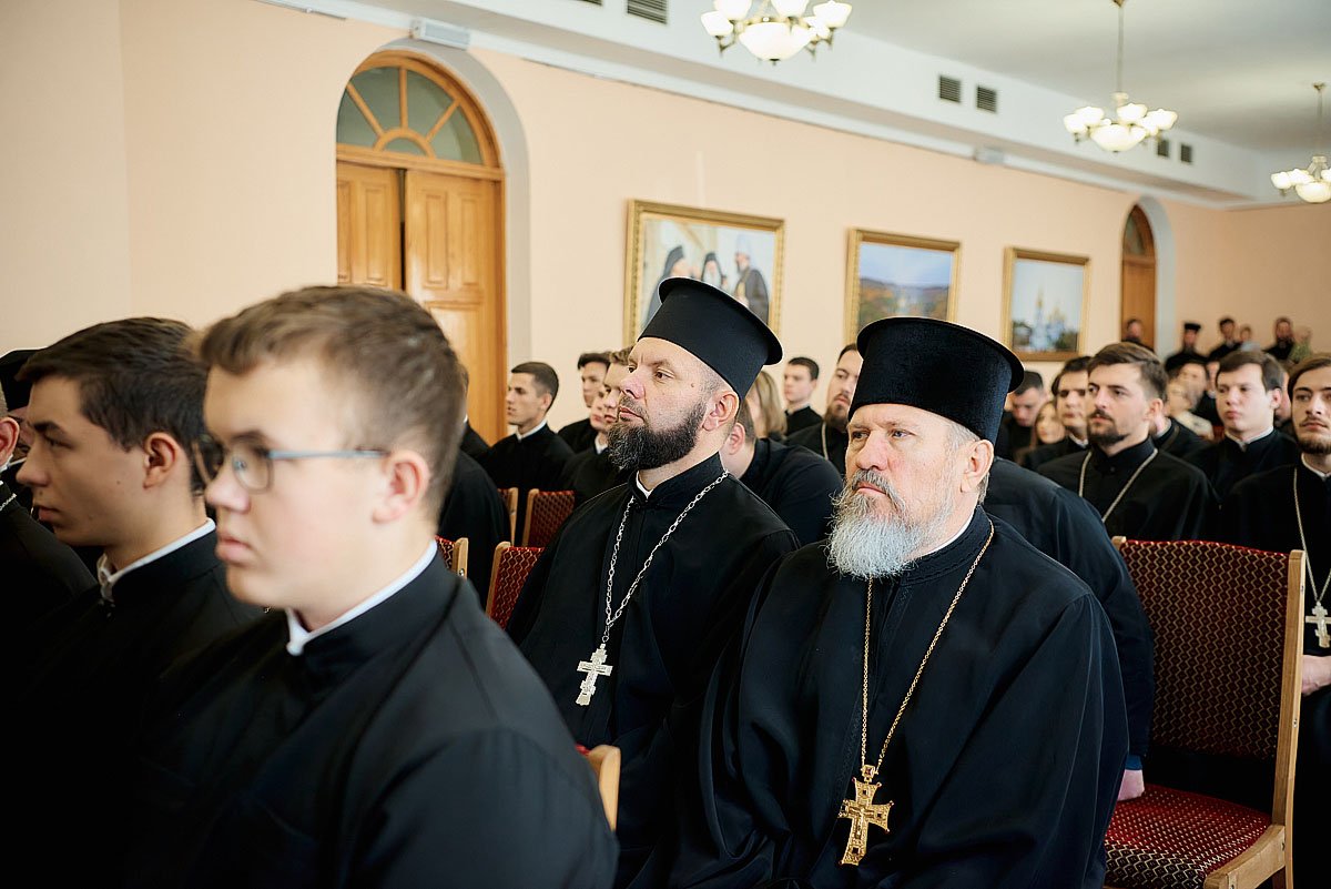 Зі вступним словом до учасників заходу звернувся ректор КПБА протоієрей Ярослав Романчук. У своєму виступі він підсумував досягнення академії у минулому навчальному році та окреслив стратегічні орієнтири подальшого розвитку. Водночас ректор наголосив, що завдання академії не обмежуються лише освітньо-науковою сферою: «КПБА – це також школа духовного формування. Тут студенти не тільки здобувають знання, але й навчаються служінню. Саме тому ми розвиваємо практичні аспекти пастирського життя, що базуються на молитві й дисципліні. У час війни і суспільних потрясінь Церква покликана бути поруч із людьми, тож ми прагнемо готувати наших вихованців саме до такого служіння.