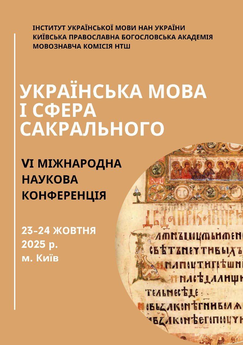 У стінах Київської православної богословської академії 23–24 жовтня 2025 року відбудеться VІ Міжнародна наукова конференція «УКРАЇНСЬКА МОВА І СФЕРА САКРАЛЬНОГО».
