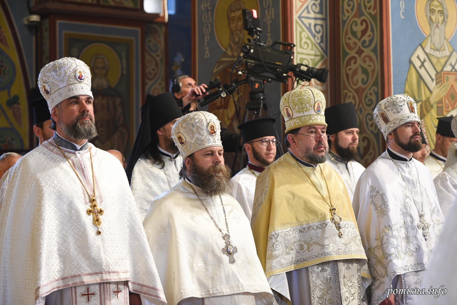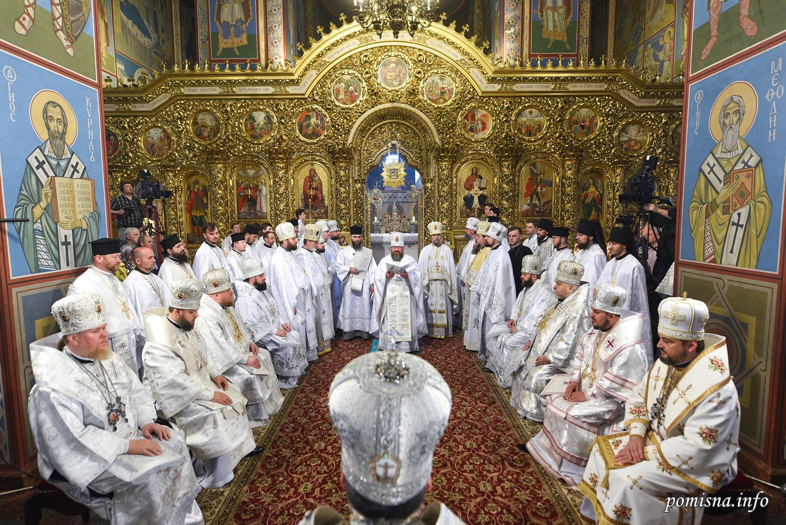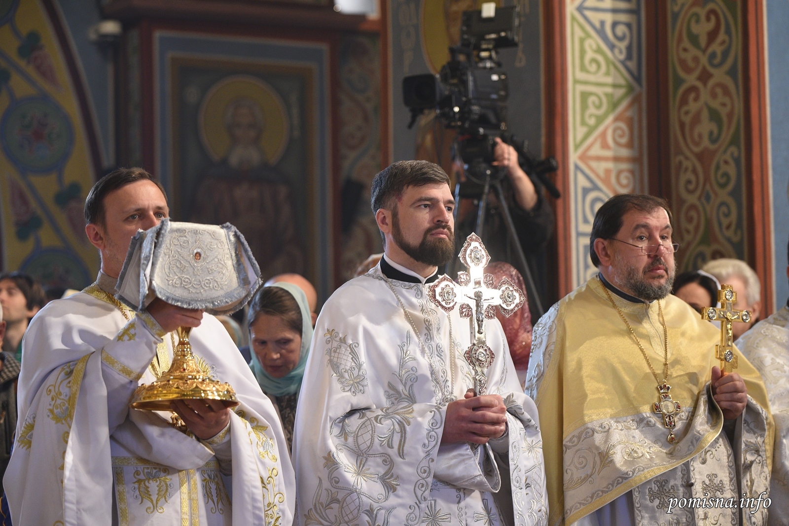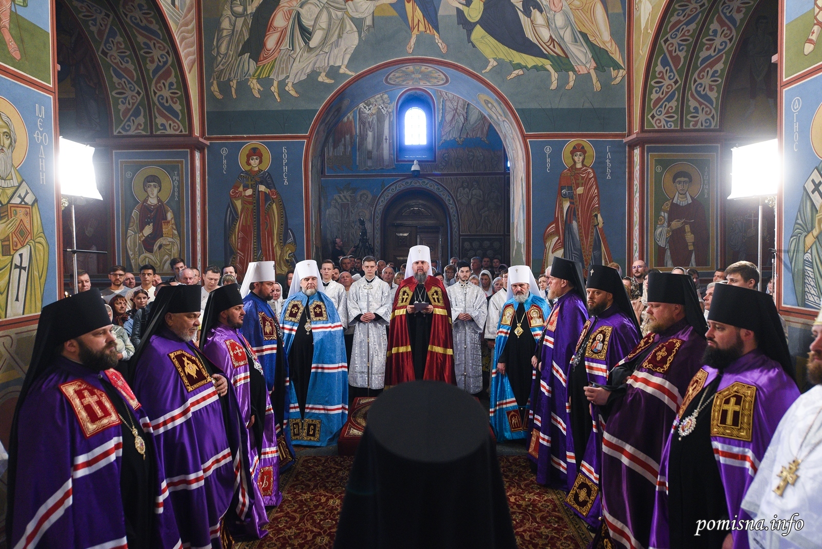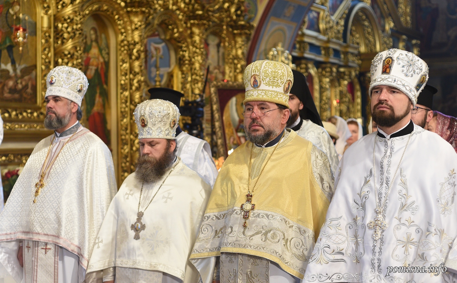 Його Блаженству співслужили митрополит Вінницький і Барський Симеон, митрополит Сімферопольський і Кримський Климент, митрополит Переяславський і Вишневський Олександр, архієпископ Чернігівський і Ніжинський Євстратій, архієпископ Житомирський і Поліський Володимир, архієпископ Вишгородський Агапіт, єпископ Білогородський Іоан, єпископ Запорізький і Мелітопольський Фотій, єпископ Хмельницький і Кам’янець-Подільський Павло, єпископ Богородчанський Феогност, всечесна братія монастиря та запрошене духовенство, зокрема і ректор КПБА професор протоієрей Олександр Трофимлюк.