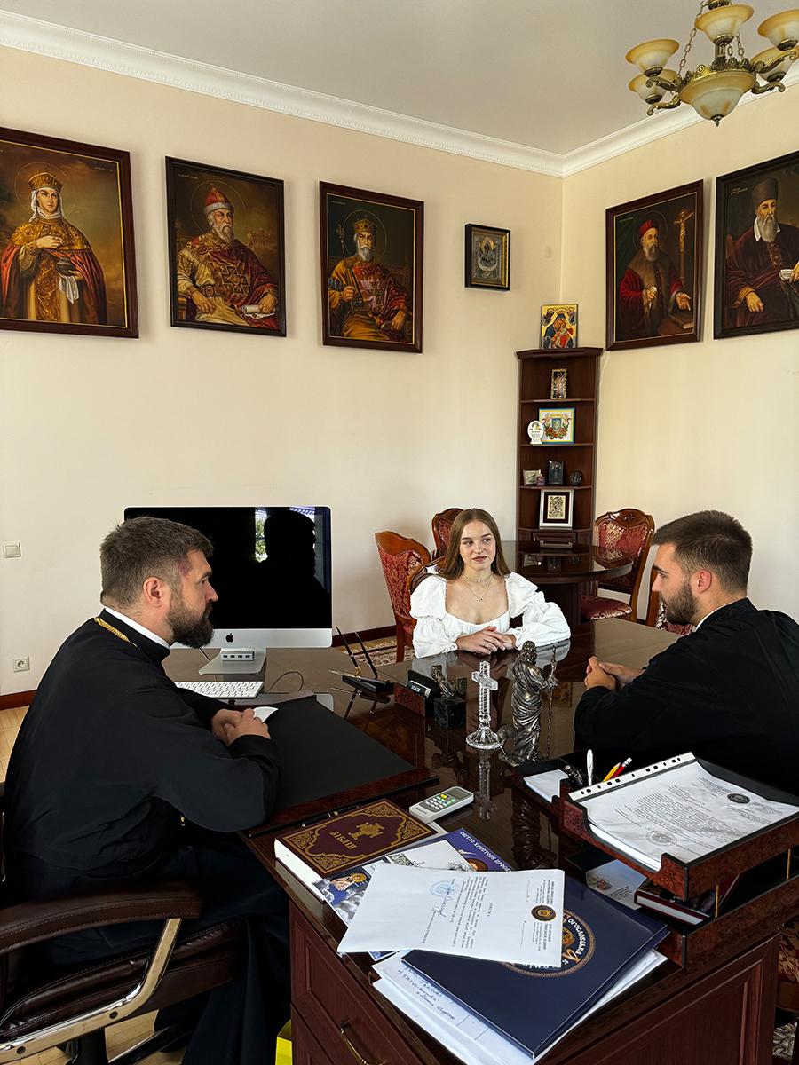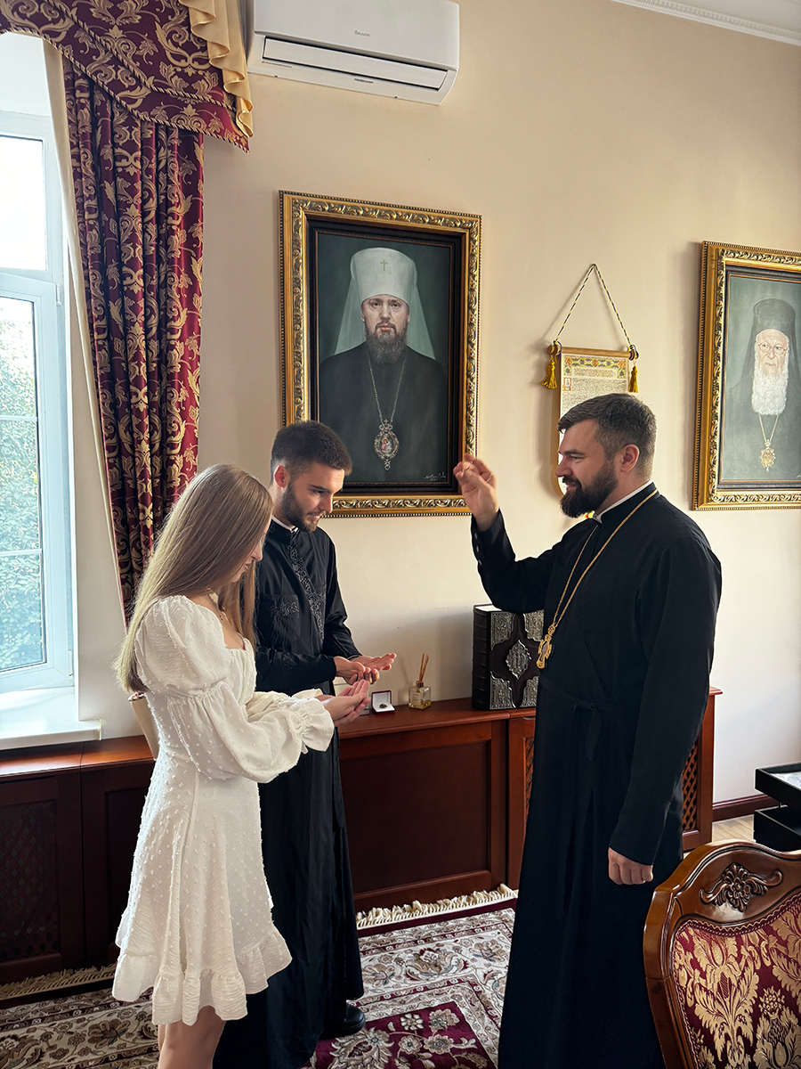 Керівник закладу вищої духовної освіти привітав майбутнє подружжя, побажавши щасливого та благополучного співжиття.