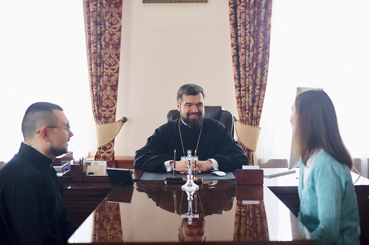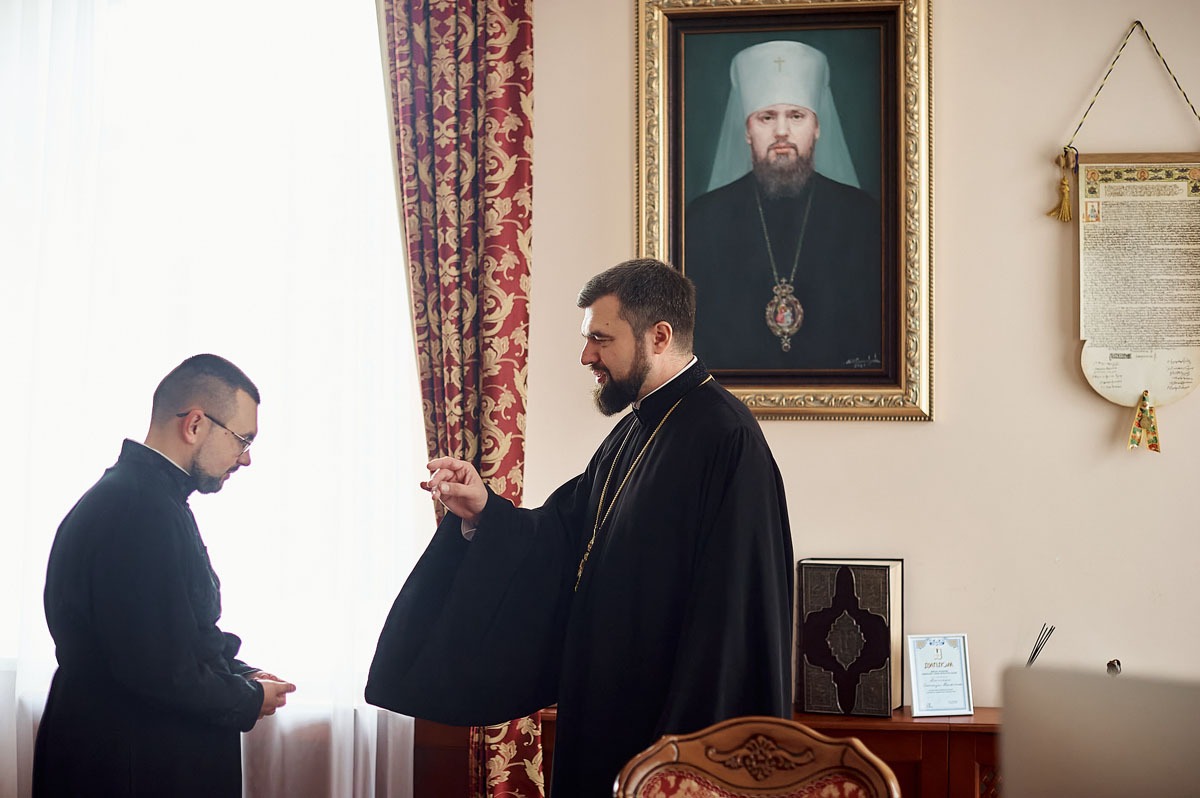 Керівник закладу вищої духовної освіти привітав майбутнє подружжя, закликав на них Боже благословення.