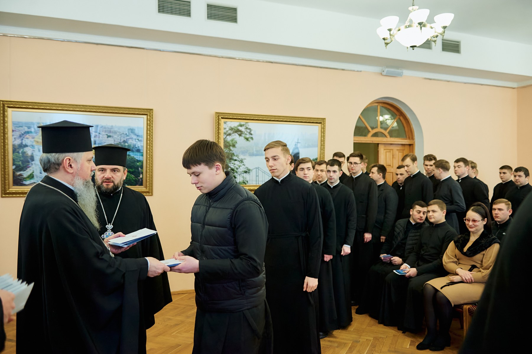 Зустріч пройшла у теплій атмосфері. Блаженнійший Митрополит Епіфаній поспілкувався зі студентами, поділився архіпастирським досвідом і нагадав, що богослів’я починається не з книжок, а з живої віри, молитви та особистої відповідальності за дар служіння. Як знак турботи й заохочення Предстоятель вручив студентам подарунки та матеріальну підтримку.
