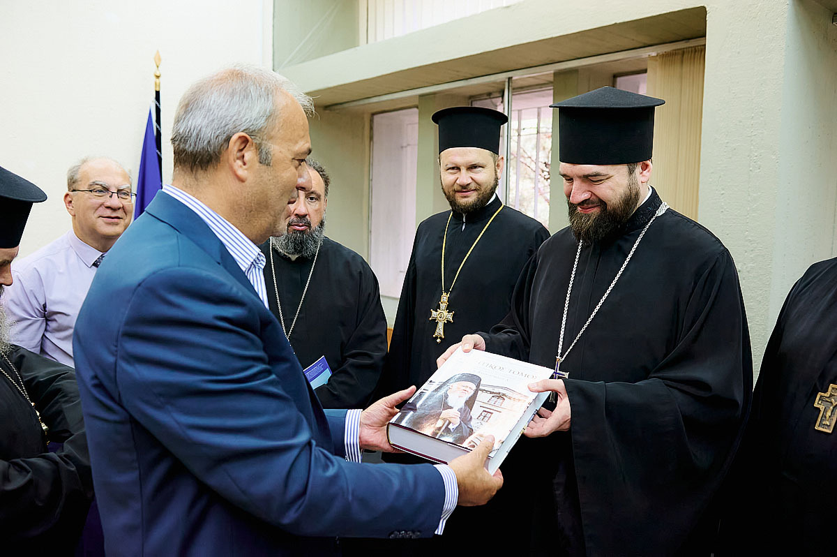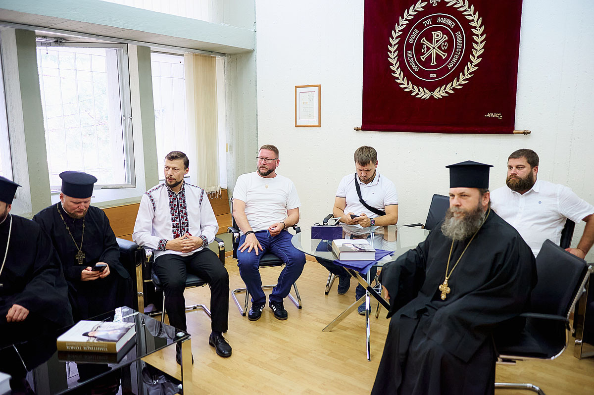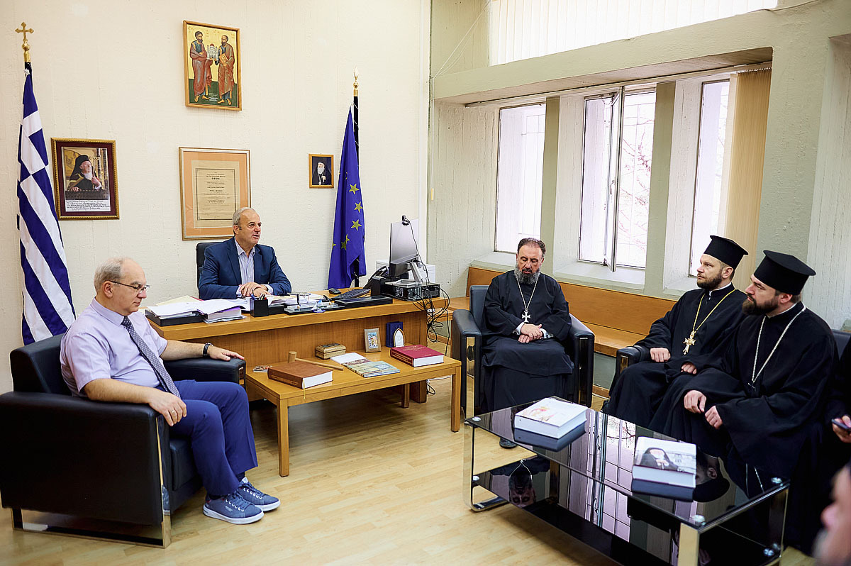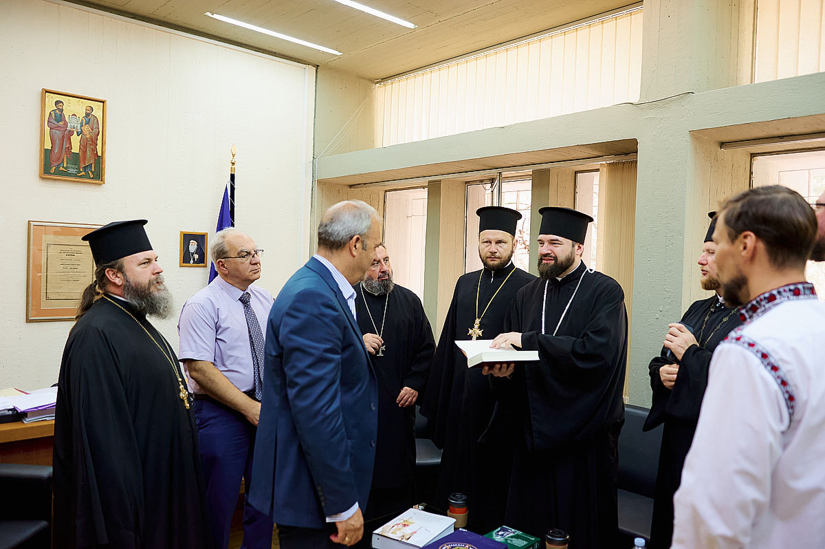 Тут українська делегація зустрілася з деканом Богословського інституту професором Еммануїлом Карагеоргудісом та завідувачами кафедр професором Дімітріосом Мосхосом і протопресвітером Афанасієм Меліссарісом.