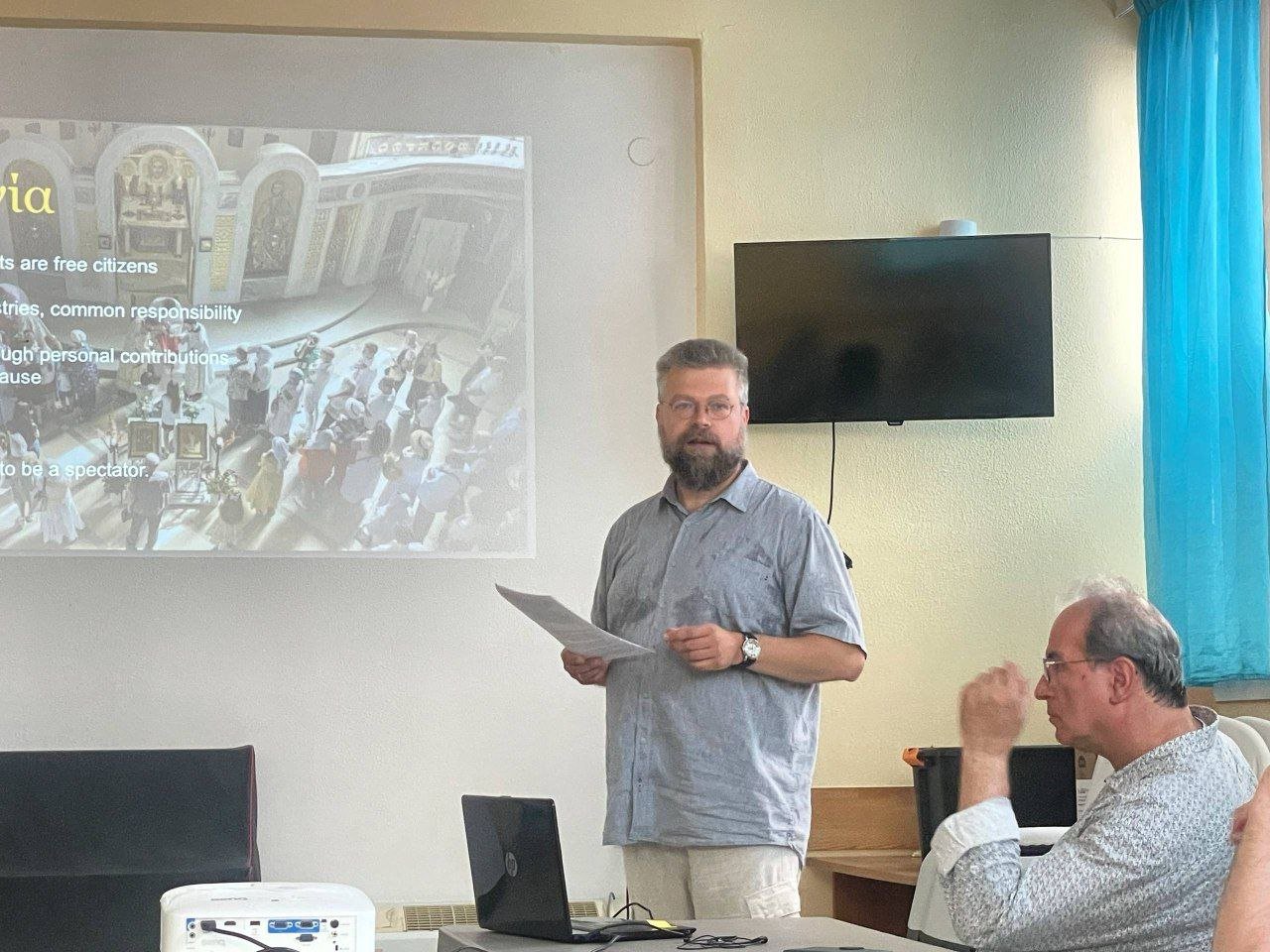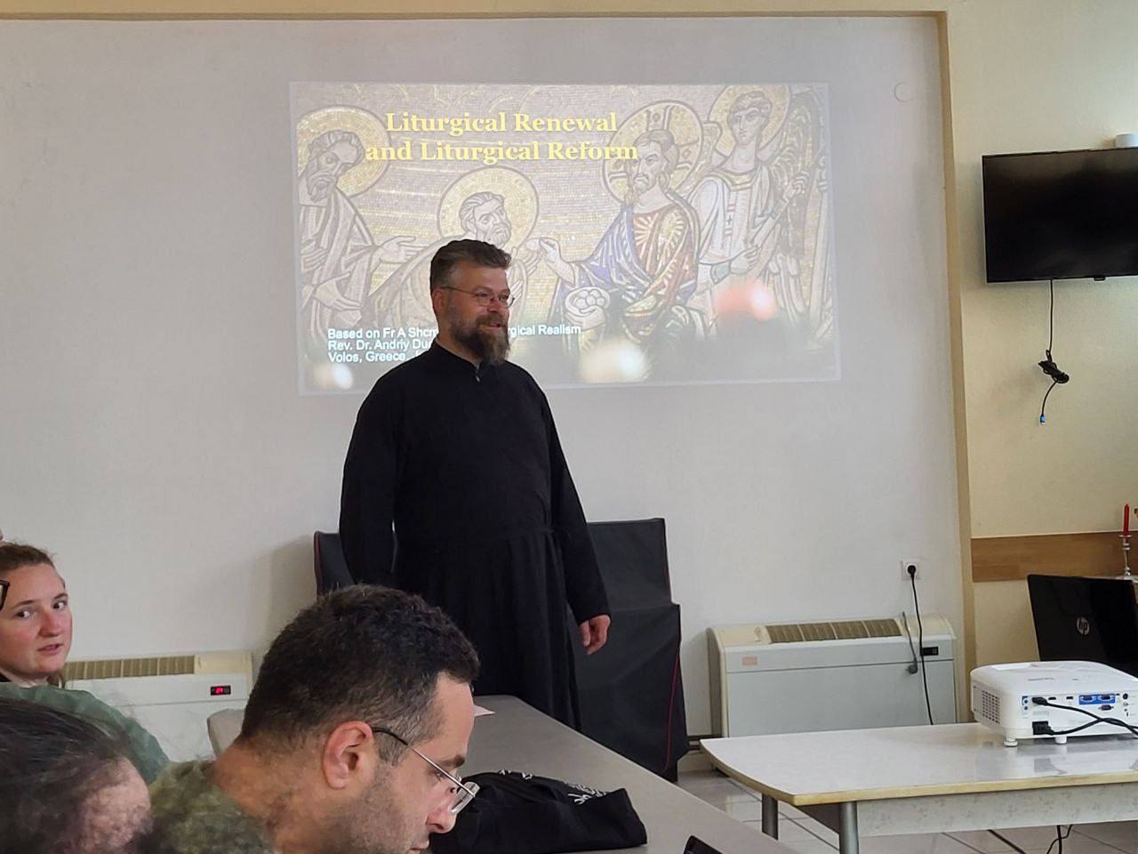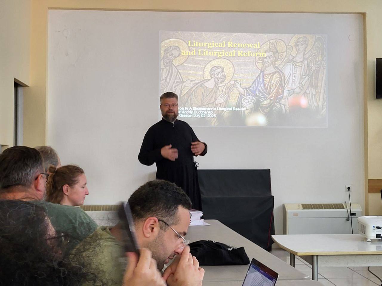 2 липня в рамках Літнього інституту Волосу, який організувала Волоська академія богословських досліджень разом з Міжнародною православною богословською асоціацією, доцент кафедри церковно-практичних дисциплін КПБА протоієрей Андрій Дудченко провів воркшоп на тему “Літургійне оновлення і літургійна реформа”. У воркшопі взяли участь представники духовних шкіл Православної Церкви України, учасники з Греції, Грузії та Великобританії, в також директор Волоської академії д-р Панделіс Калаїдзідіс.
