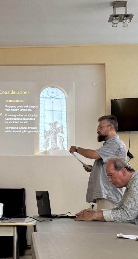 Спираючись на концепцію “літургійного реалізму”, сформульовану о. Олександром Шмеманом і розвинену о. Андрієм Дудченком у його нещодавній монографії, учасники воркшопу дослідили, як православне богослужіння може сприйматися і переживатися всіма його учасниками, включно з кліром та вірянами, як досвід присутності есхатологічної реальності Царства Божого. Учасники розглянули історичні приклади літургійного розвитку, а також обговорили такі виклики, як збалансованість між збереженням традиції та її розвитком та інноваціями, розуміння “царського священства” вірян як народу Божого. Після презентації через обговорення в малих групах учасники роздумували над актуальними для них питаннями душпастирської актуальності та практичної реалізації літургійного відродження у своїх парафіях.