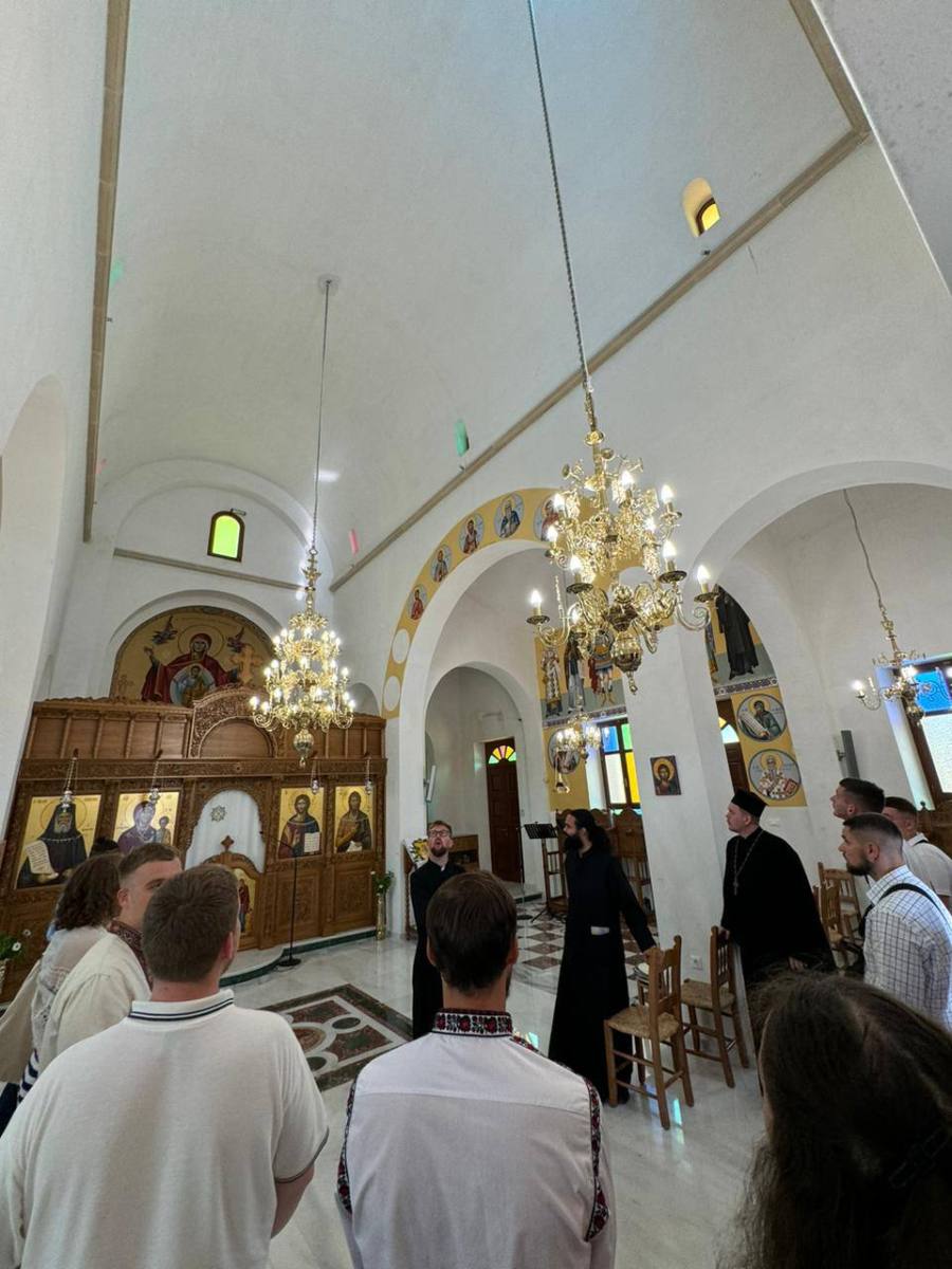 Також студенти відвідали громаду святого Паїсія Святогорця у місті Ханья. Настоятель священник Зарахій показав храм, який ще у стані будівництва, розповів про життя парафії та життя храмового святого.