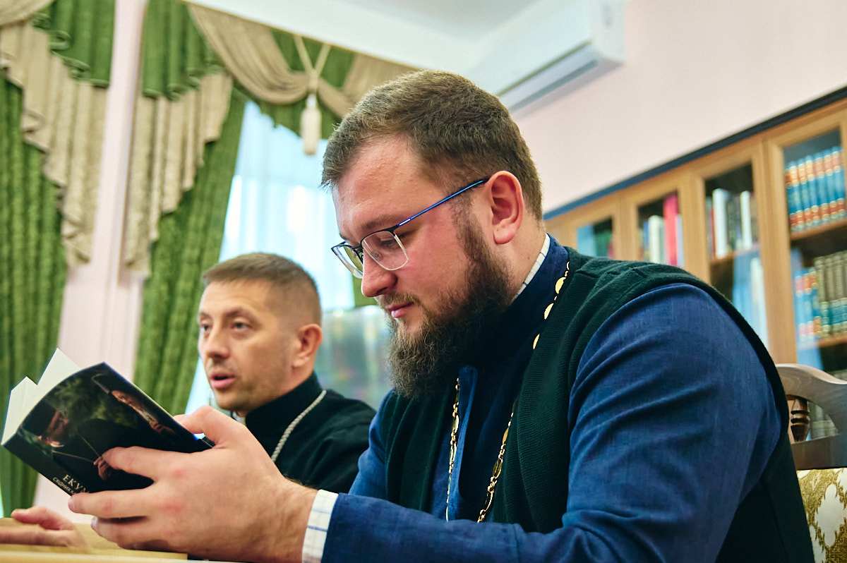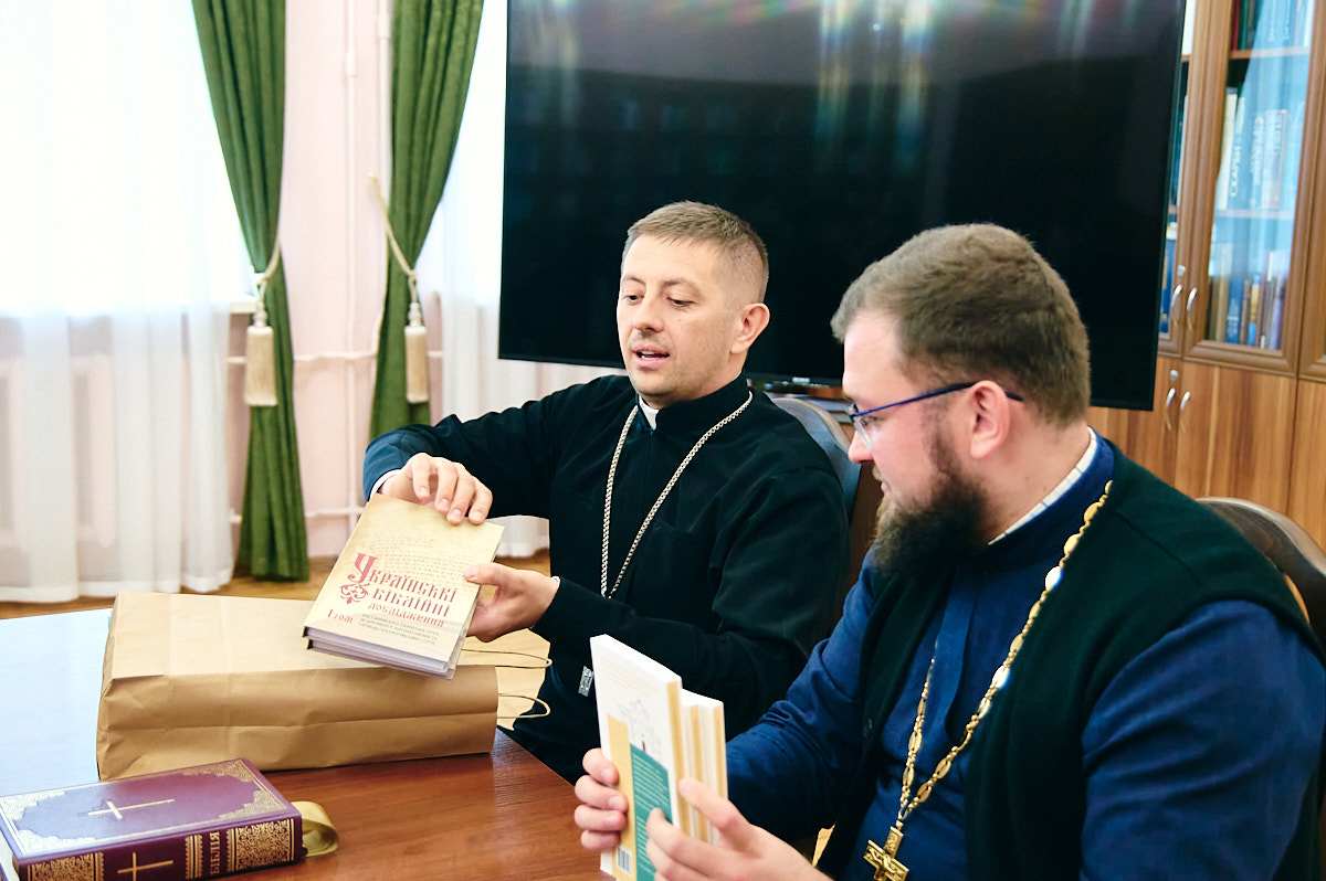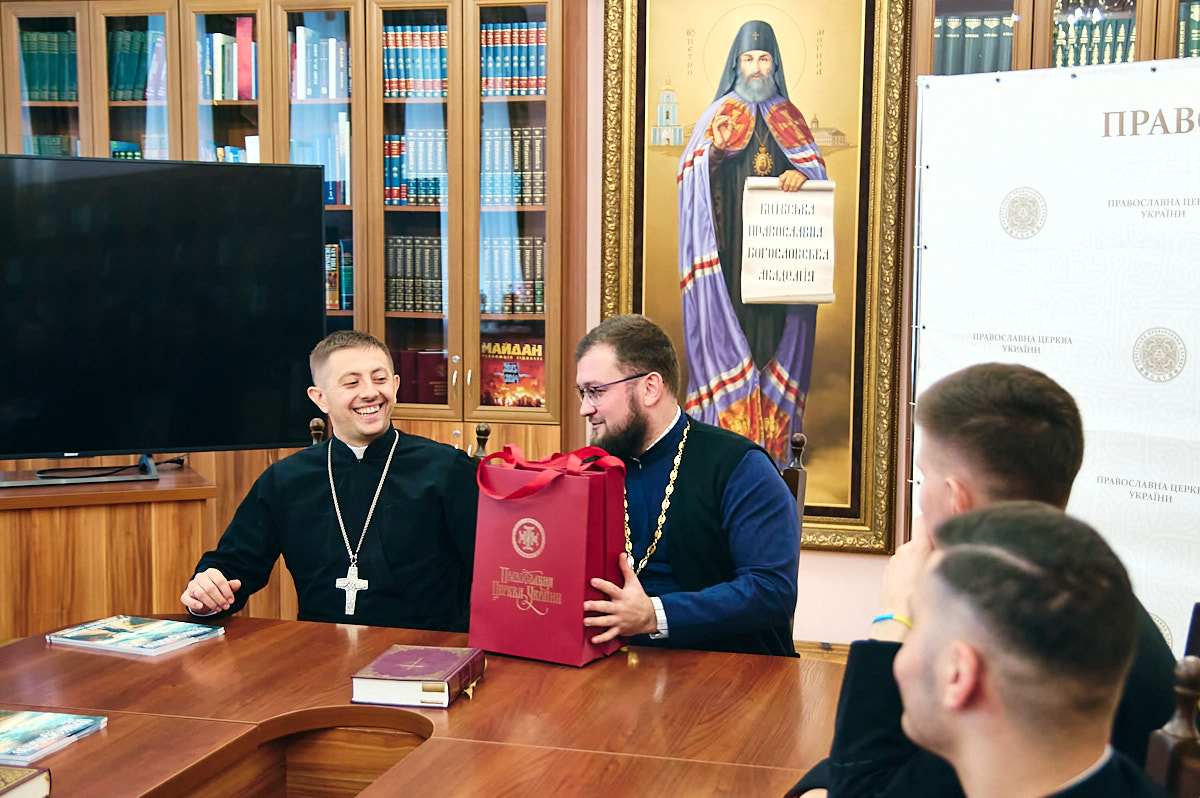 Натомість, духівник КПБА священник Орест представив два останні журнали «Церква та суспільство»: «Життєві шляхи людини шлюб, чернецтво, самотність» та «Війна світів «русскій мір» проти християнства»; два томи «Проповідей Блаженнійшого Митрополита Епіфанія» та підручники викладача грецької мови, протоієрея Олега Кожушного: «посібник з курсу «Ранньохристиянська література» і «Преподобний Роман Солодкоспівець і візантійська гімнографія III-VIII століть».