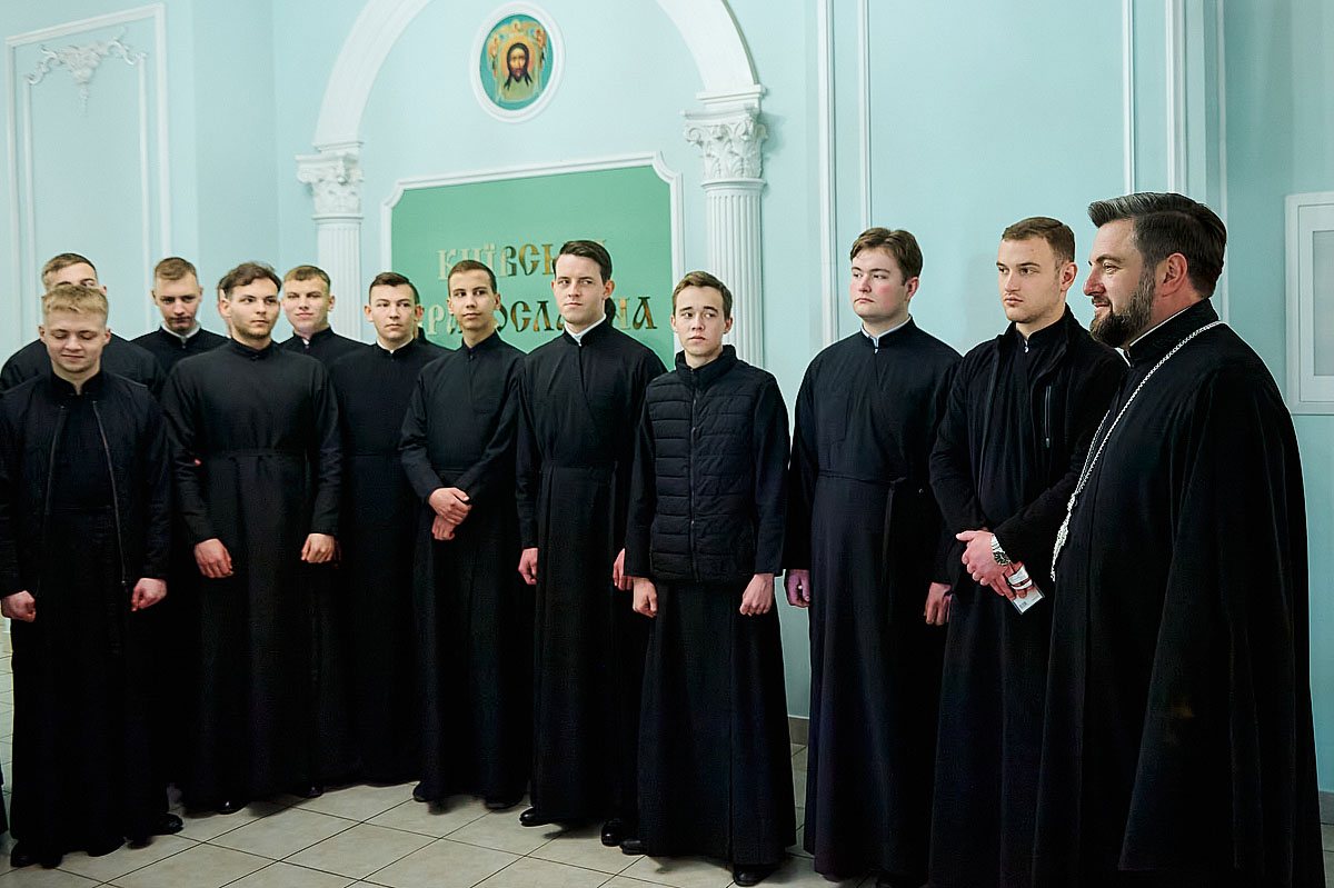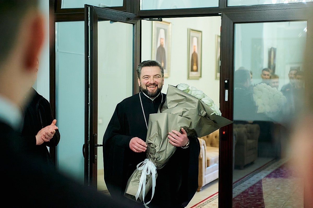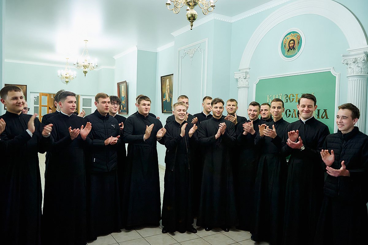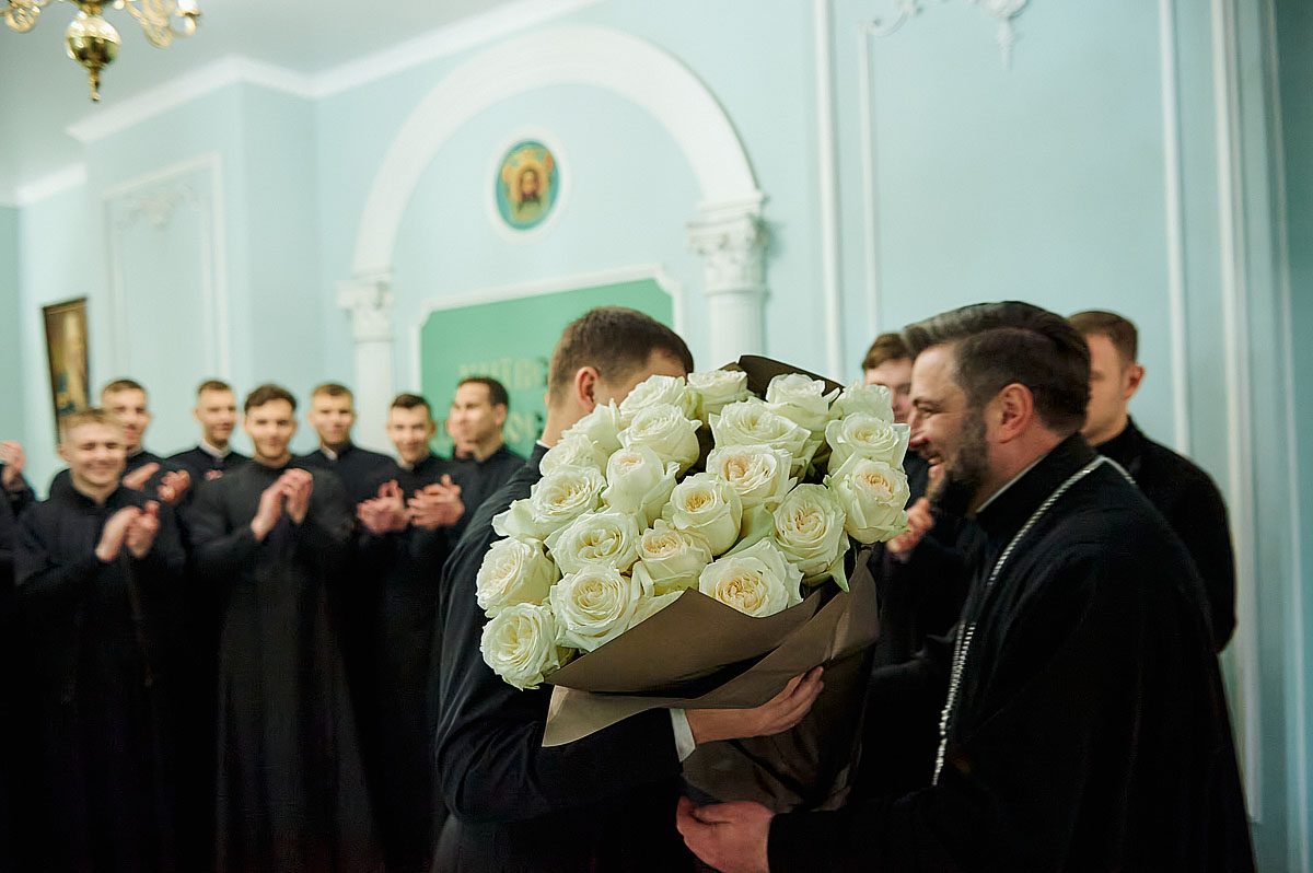 Хор Київської православної богословської академії привітав протоієрея Ярослава Романчука з призначенням на посаду ректора академії.