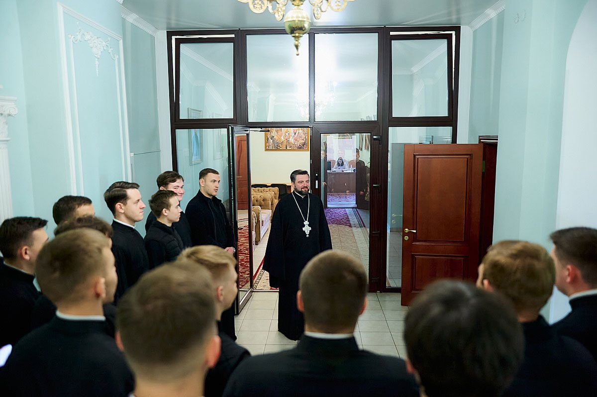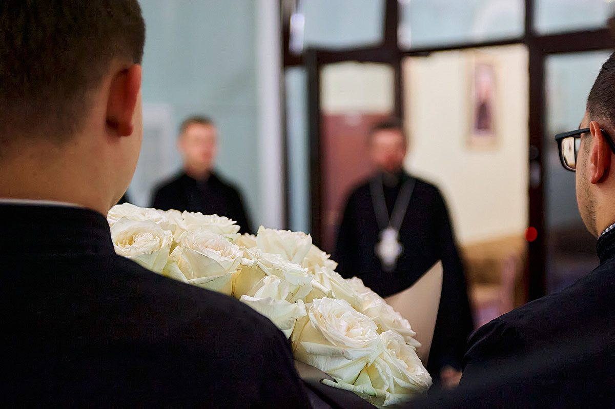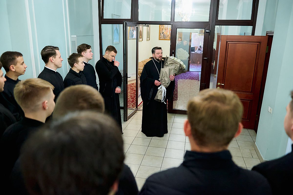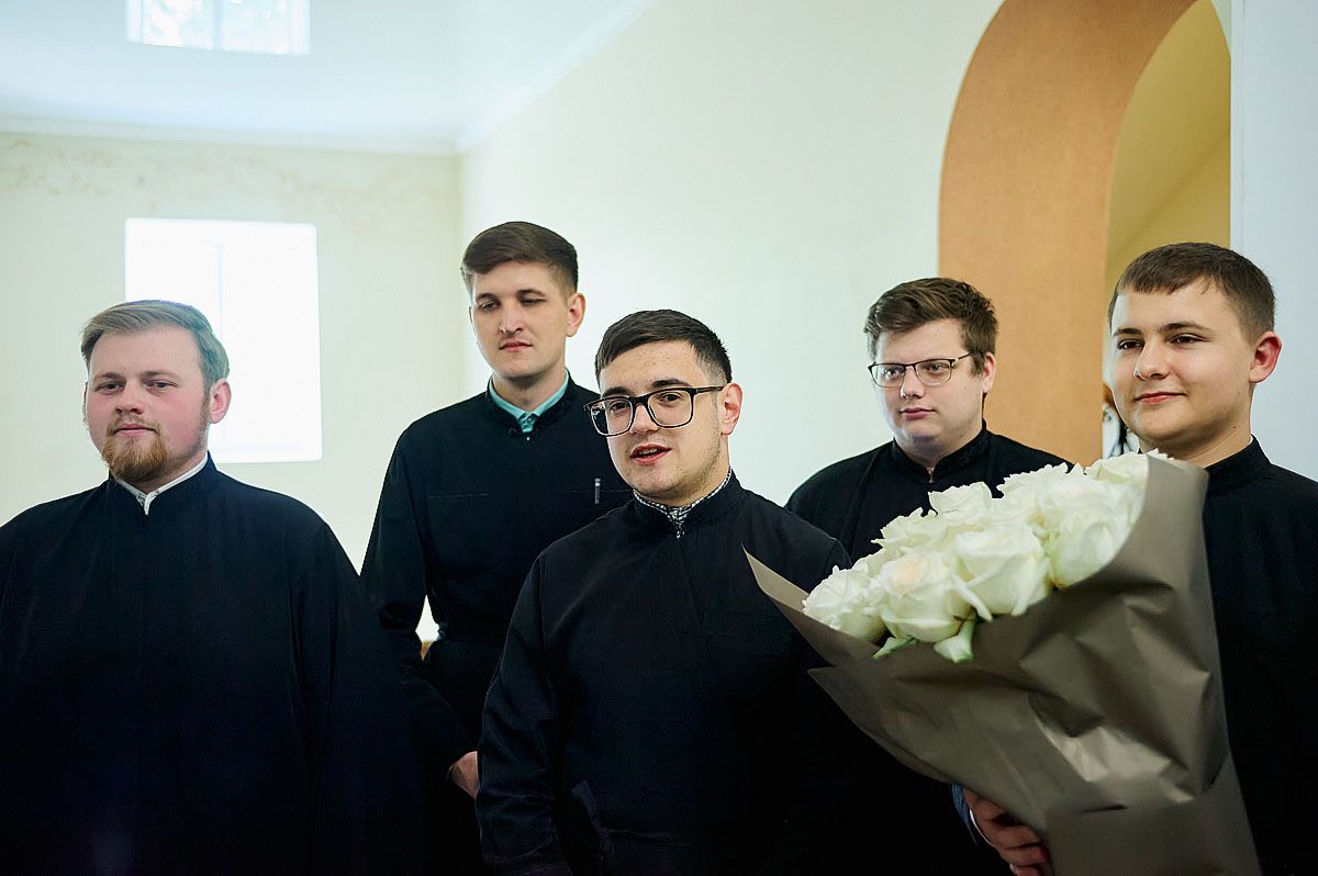 Хор Київської православної богословської академії привітав протоієрея Ярослава Романчука з призначенням на посаду ректора академії.