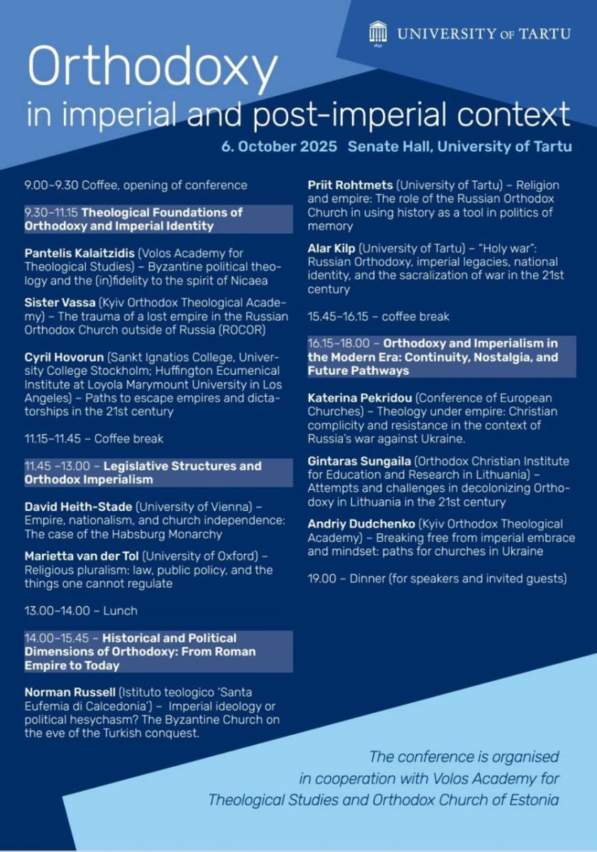6 жовтня 2025 року доцент кафедри церковно-практичних дисциплін Київської православної богословської академії прот. Андрій Дудченко взяв участь у міжнародній конференції «Православ’я в імперському і пост-імперському контексті», яка відбулася в Університеті Тарту (Естонія). Захід був організований спільно з Волоською академією богословських досліджень (Греція) та зібрав провідних фахівців з православного богослов’я, історії та сучасних церковних викликів з різних країн Європи.