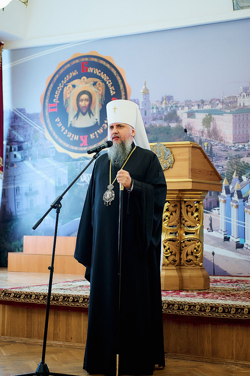 Цьогоріч усі ми, хто зібралися у цьому залі, відзначаємо подію відродження Київських духовних шкіл. Духовна освіта в Україні має давню, багатовікову історію. Богословські школи поставали, розвивалися, обмежувалися й навіть припиняли своє існування. Такі утиски духовна освіта зазнавала в умовах московсько-російського атеїстичного панування в Україні в ХХ столітті, коли діяльність духовних навчальних закладів у Києві була ліквідована, а діяла лише одна семінарія в Одесі.