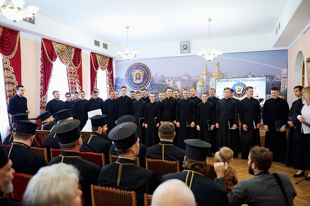 «Після десятиліть державних атеїстичних гонінь і заборони на свою працю, у 1989 році в стінах відроджуваної Печерської Лаври відновила свою діяльність і Київська духовна семінарія. Складним був шлях цієї духовної школи, як і всієї нашої Помісної Української Православної Церкви. Але за ці три з половиною десятиліття ми маємо численні добрі плоди, якими можемо пишатися і за які нині особливо дякуємо Богові, – сказав Предстоятель. – Було навчено вже кілька поколінь священнослужителів, і в стіни нашої школи приходять здобувати освіту вже онуки тих, хто отримував богословську освіту в той, вже віддалений від сьогодення час».