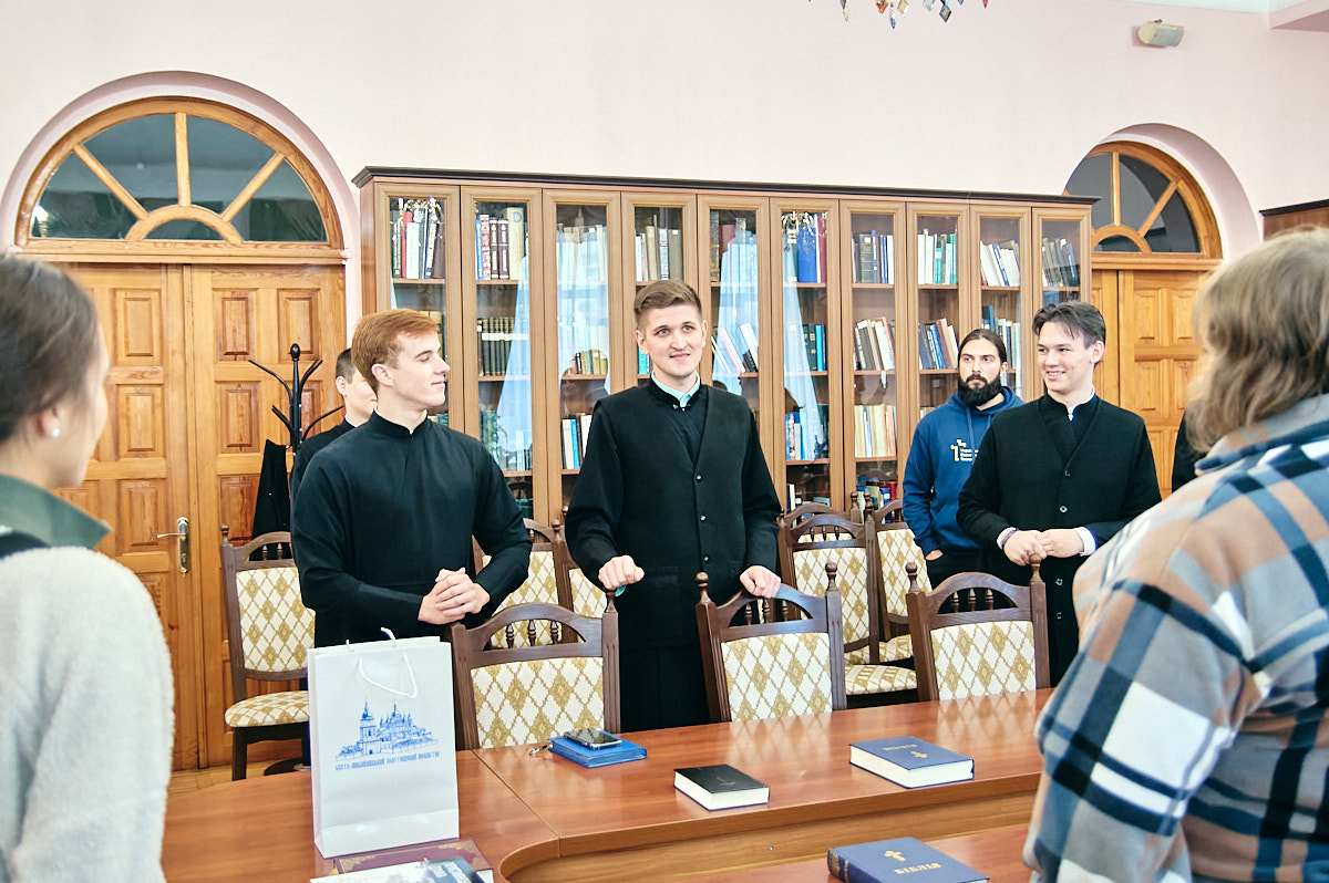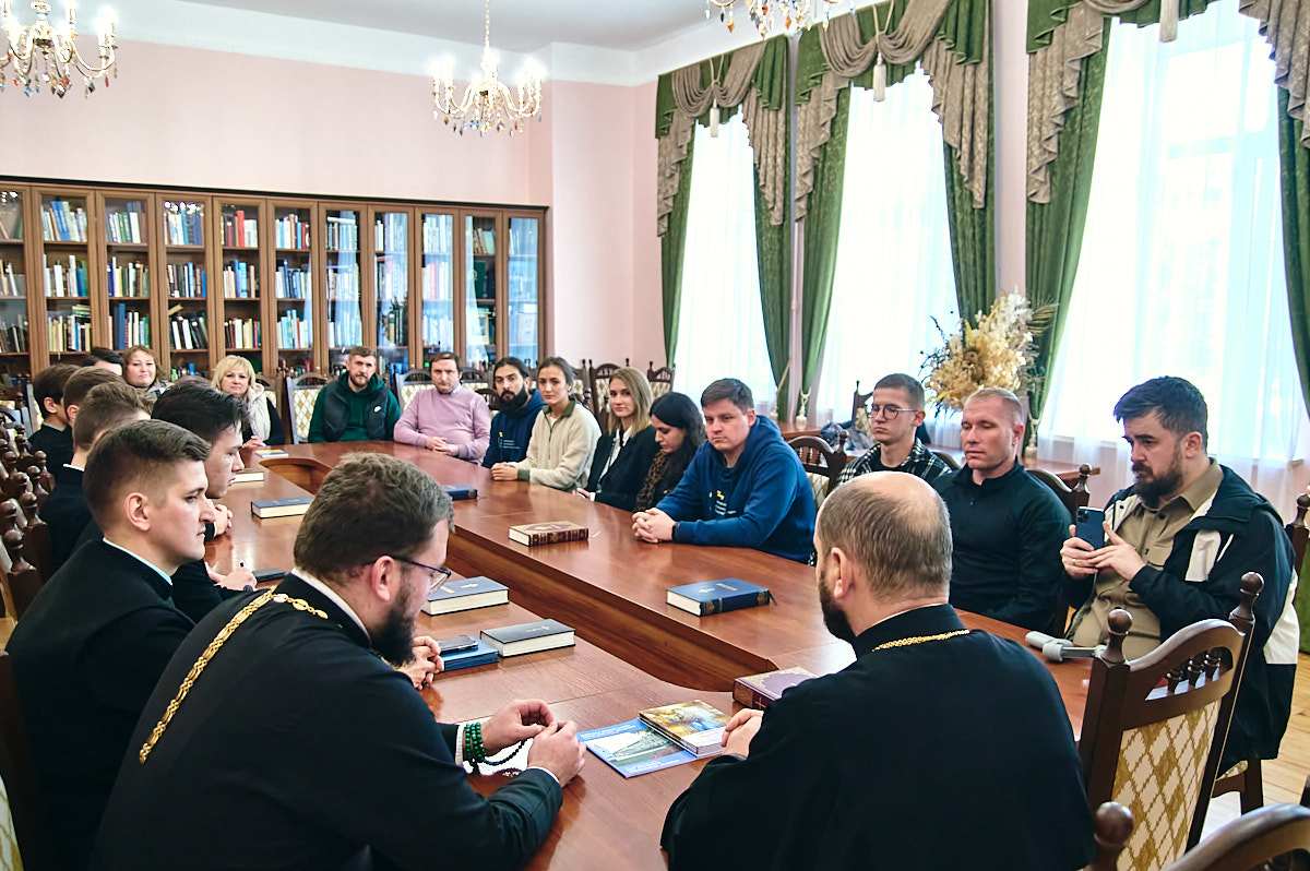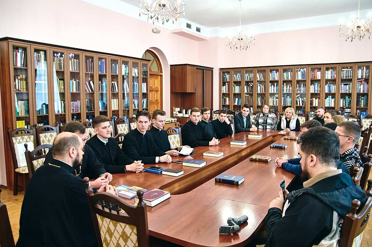 В ході діалогу протоієрей Віталій Клос та ієромонах Рафаїл у своїх міркуваннях звернули увагу на те, як формувалася православна духовна освіта в КПБА. Згадали що був період, коли радянська тоталітарна ідеологія знищувала будь-який прояв релігійності і біблійної проповіді. Під час розмови, учасники зустрічі торкалися теми впливу «російського світу» на життя церкви та держави, проповідницької діяльності в умовах військового стану та бойових дій. Також науковий редактор товариства Хом’як Назар вкотре наголосив на питанні труднощів діалогу з Українською Православною Церквою. Координатор проєктів Швець Назарій повідомив про майбутні плани, подальші дії Наукового товариства та про специфіку науково-освітньої діяльності православної академії, активне студентське життя та їхні практичні навички у стінах академії і поза ними. Голова наукового студентського товариства КПБА Стефан Старовецький побачив у даній події аналогію з очікуванням Христа апостолами в Сіонській горниці: «прийшовши, увійшли до світлиці, де й перебували» (Діян.1:13), і підкреслив, що: «Православна і Протестантська Церкви очікують славного Христового пришестя, але в різних конфесіях». До цієї думки Стефан Старовецький додав цитату видатного проповідника і засновника протестантизму Мартіна Лютера: «Жити треба так, немов Христос помер вчора, воскрес сьогодні, а прийде завтра».