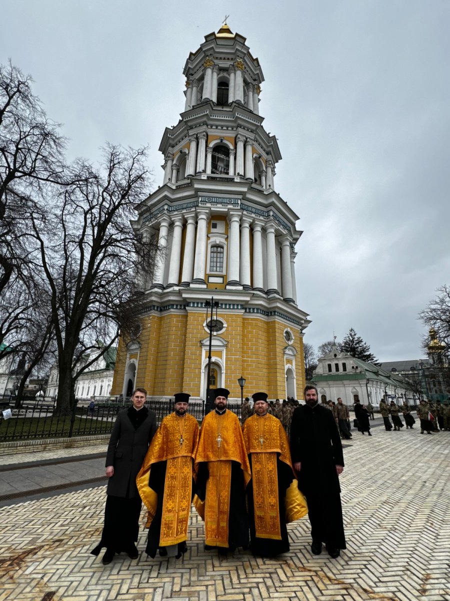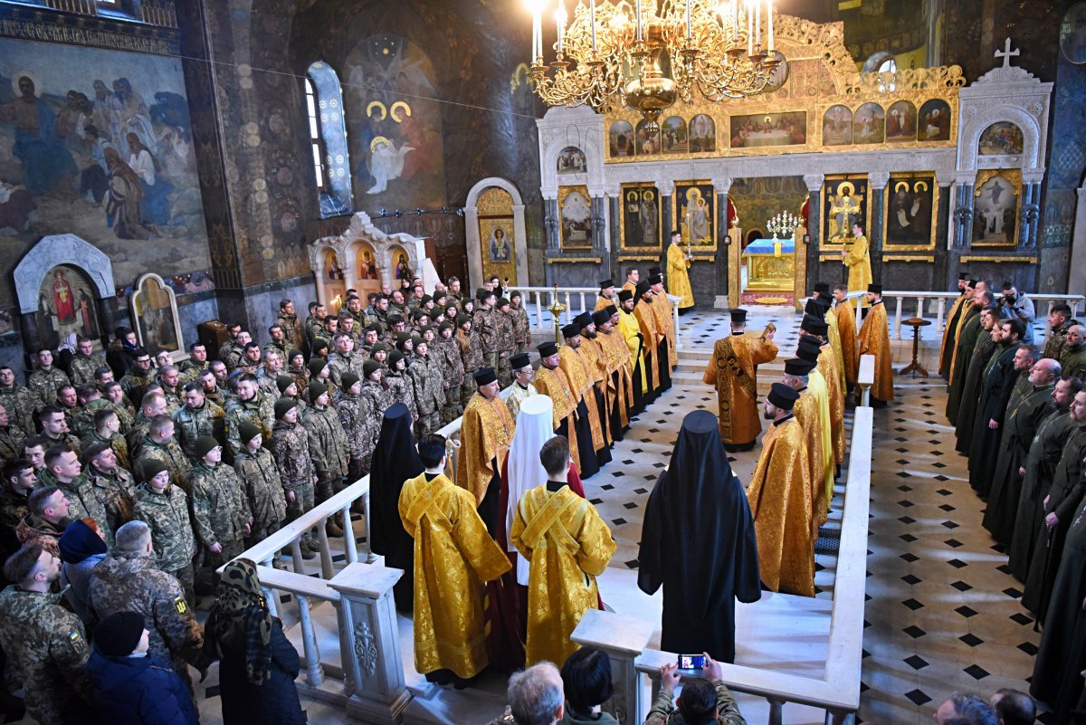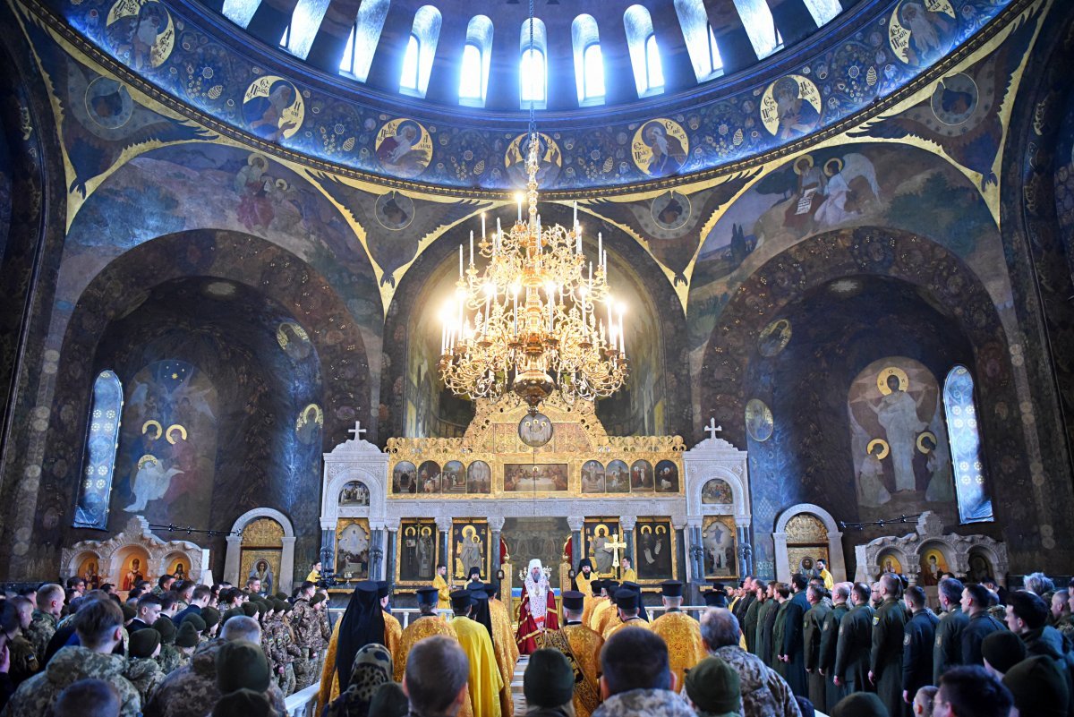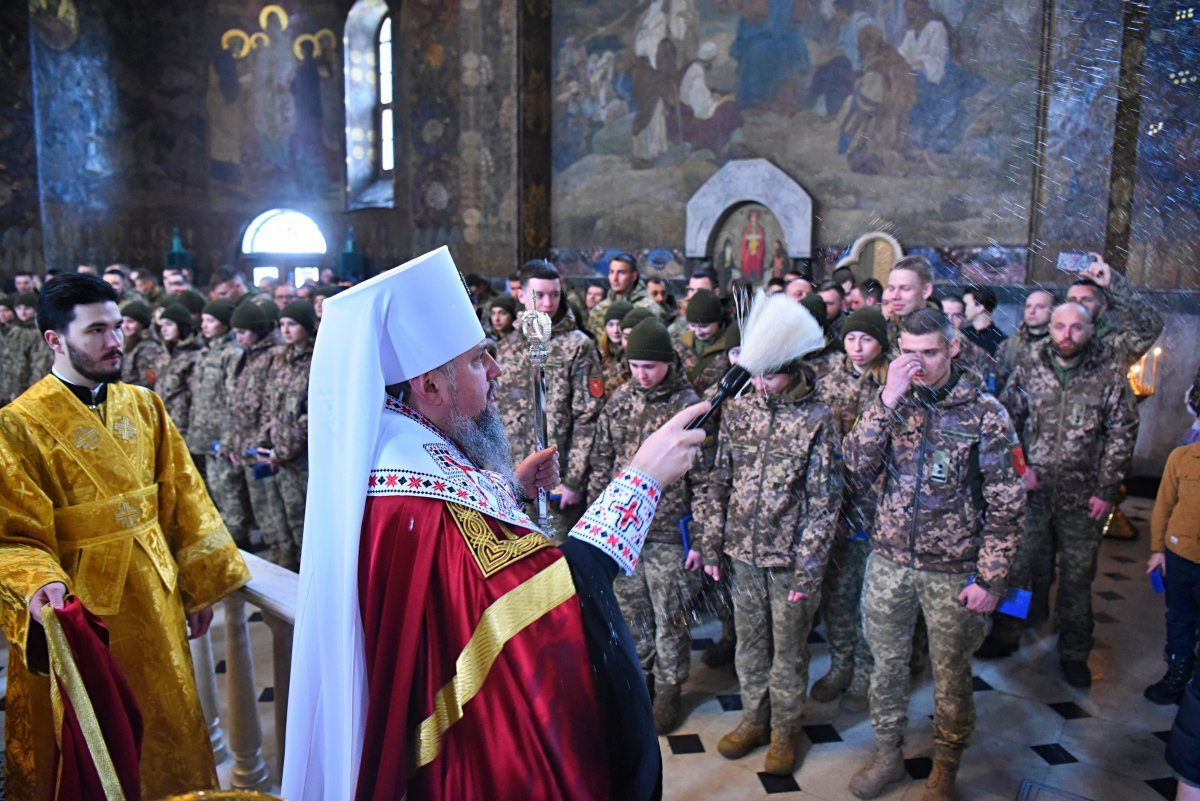 Разом з Предстоятелем автокефальної Української Православної Церкви молилися єпископ Васильківський Єфрем, намісник Києво-Печерської Лаври єпископ Бориспільський Авраамій, ректор Київської православної богословської академії професор протоієрей Олександр Трофимлюк, столичне духовенство, капелани, воїни-захисники України та керівництво і курсанти Військового інституту Київського національного університету імені Тараса Шевченка.