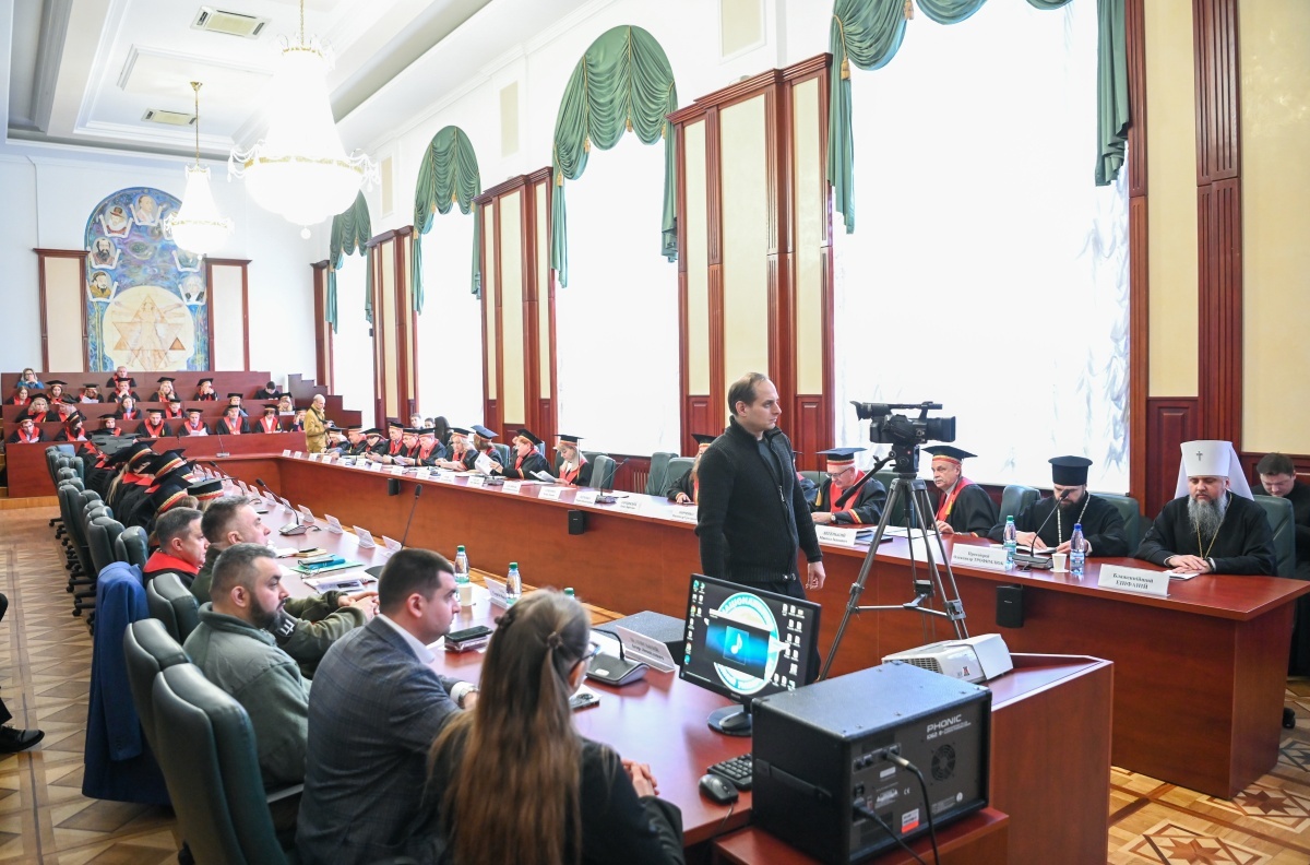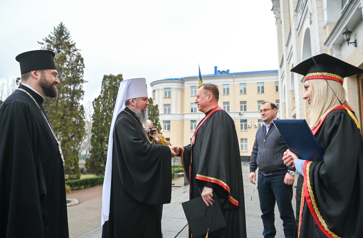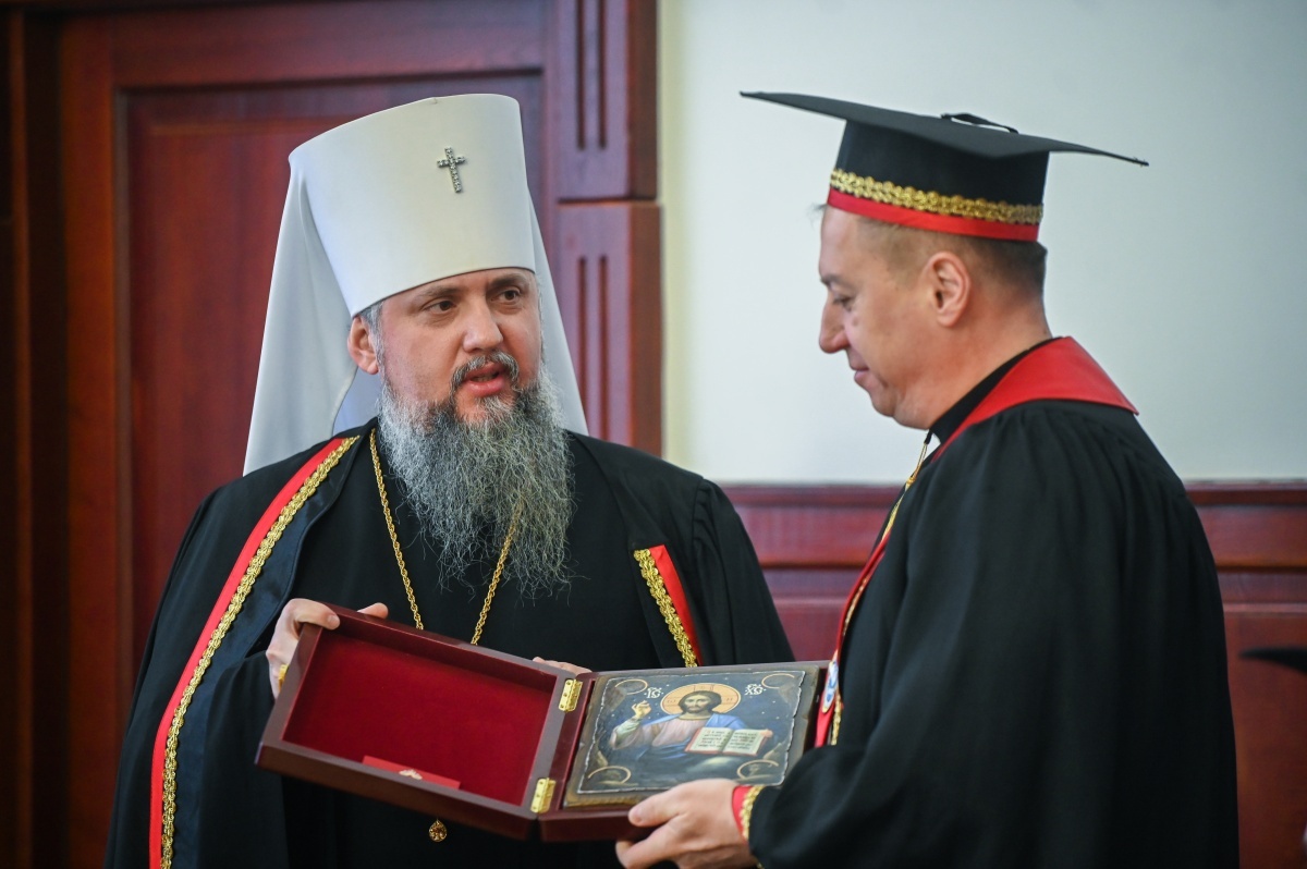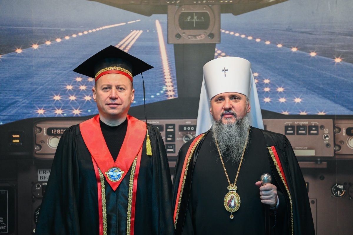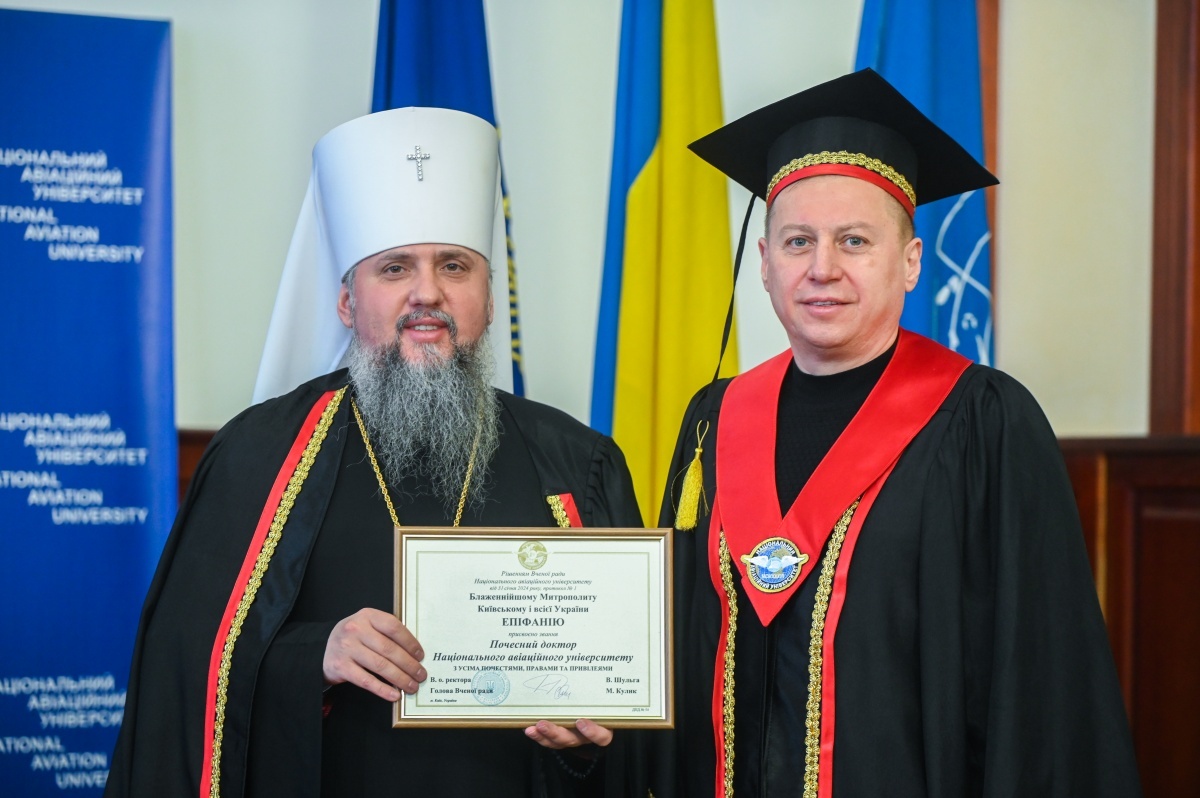На урочистому засіданні вченої ради відбулося присвоєння Митрополиту Епіфанію звання «Doctor Honoris Causa», під час якого в. о. ректора навчального закладу, доктор історичних наук, професор Володимир Шульга вручив Його Блаженству атрибути Почесного доктора Національного авіаційного університету.