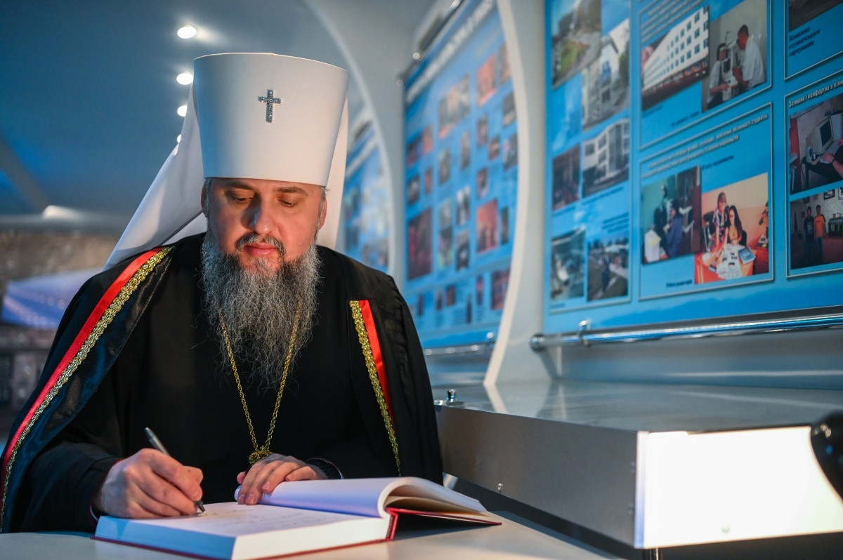 Після завершення урочистого засідання вченої ради Предстоятелю Православної Церкви України провели екскурсію музеєм університету.