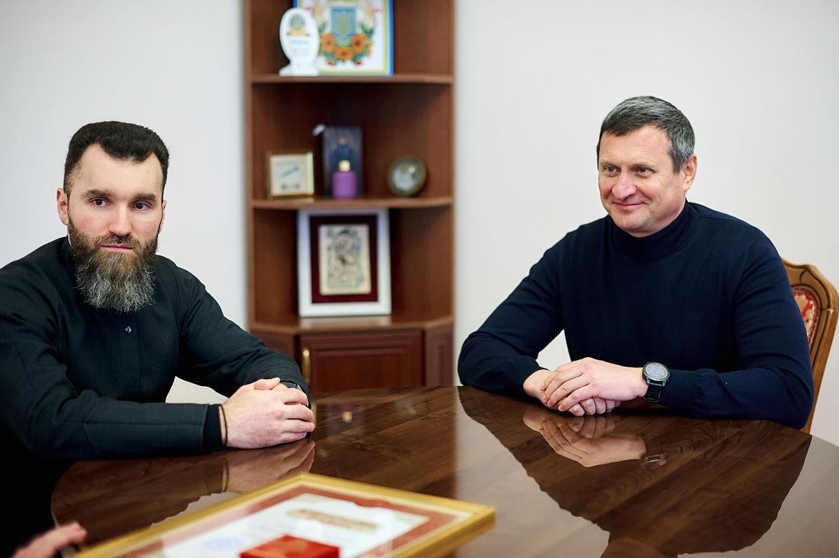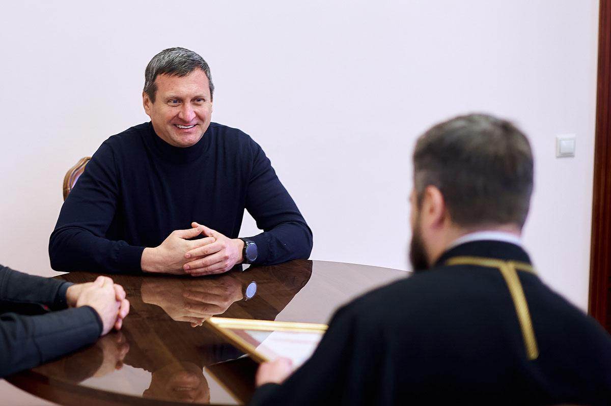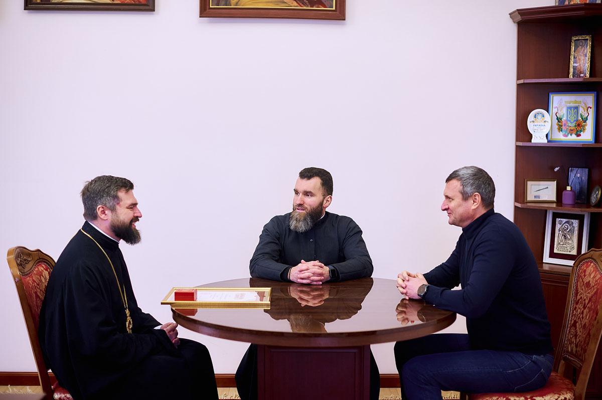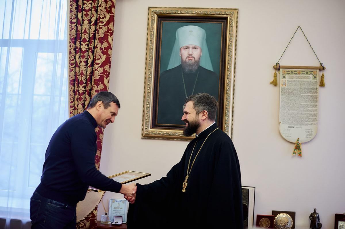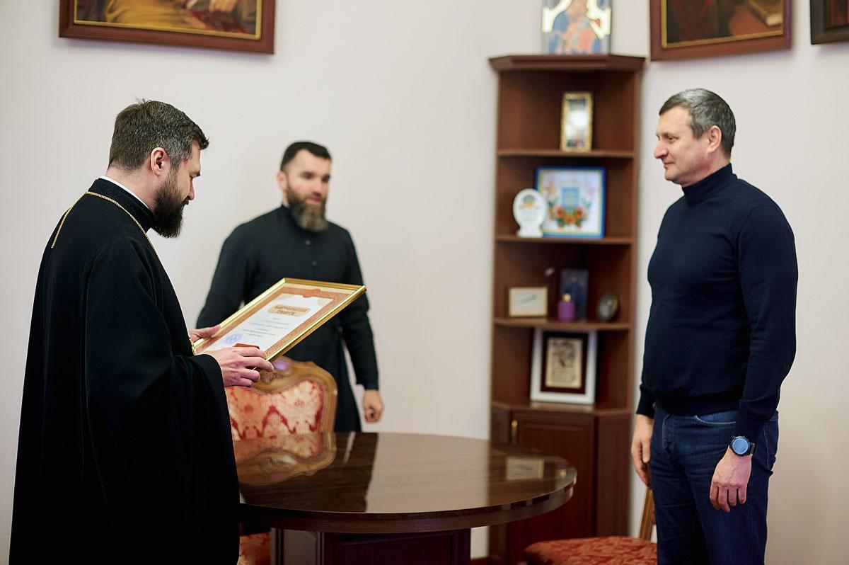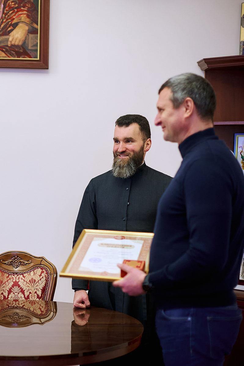 Під час зустрічі, в якій взяв участь проректор із виховної роботи протодиякон Василь Дідора, отець Олександр подякував меценатові за постійну допомогу з забезпечення продуктами студентської трапезної та, з благословіння Блаженнішого Митрополита Епіфанія, нагородив Дмитра Олександровича Благословенною грамотою з відзнакою.