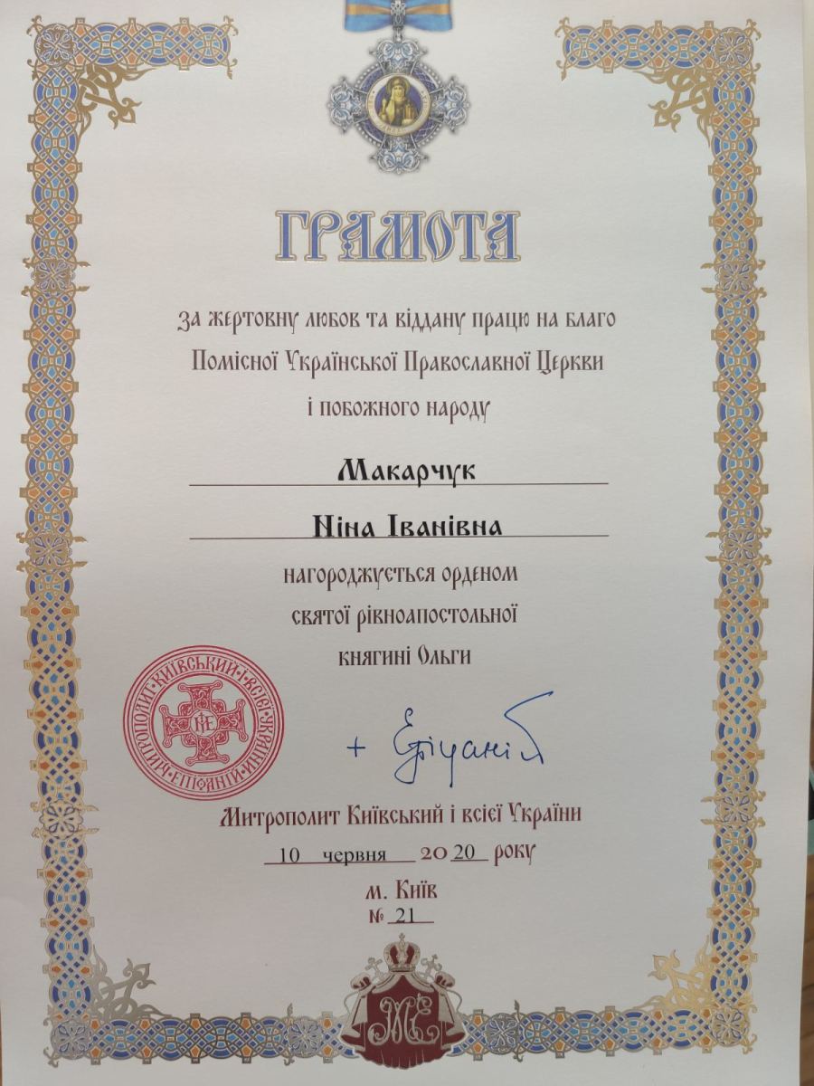 Блаженнійший митрополит Київський і всієї України Епіфаній за жертовну любов та віддану працю на благо Помісної Православної Церкви і побожного народу нагородив провідного бібліотекаря КПБА Макарчук Ніну Іванівну орденом рівноапостольної княгині Ольги.