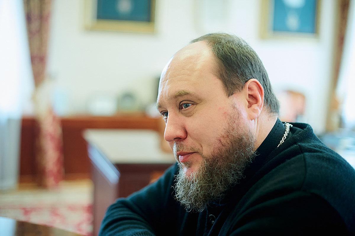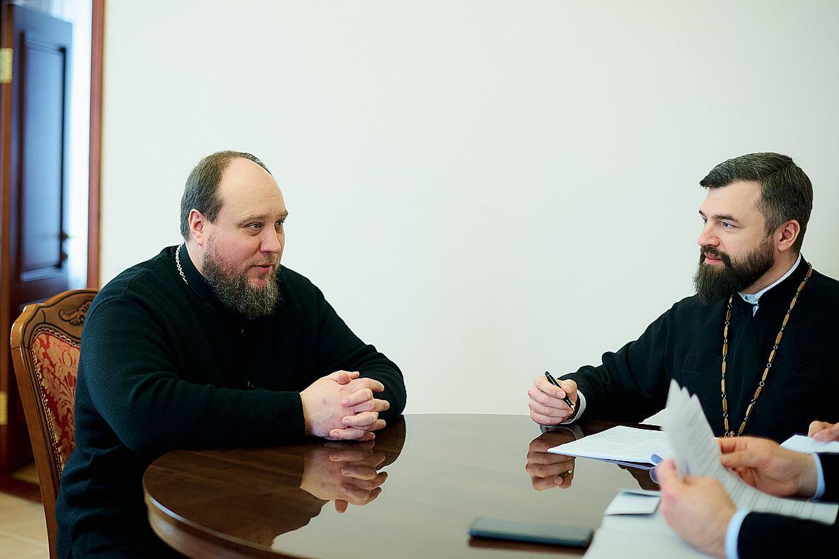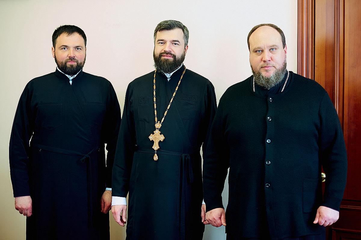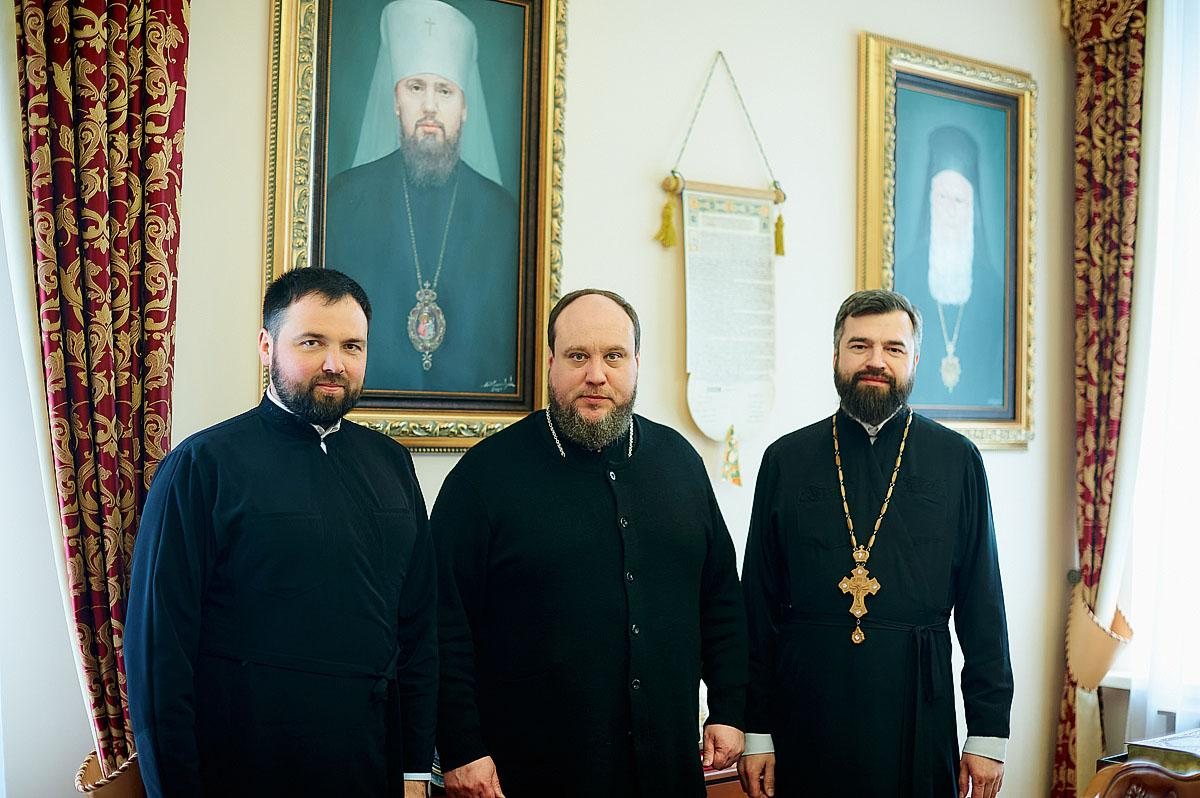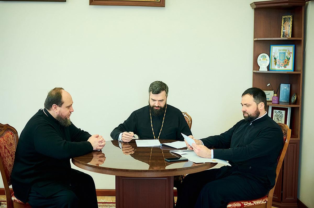 Перед зустріччю з протоієреєм Олександром Трофимлюком митрополит Симеон та Василь Михайлович Бабій, який призначений керівником проєктної групи освітньої програми, взяли благословення у Предстоятеля Православної Церкви України Блаженнішого Митрополита Епіфанія на початок співпраці у сфері освіти і науки з Українським державним університетом науки і технологій.
