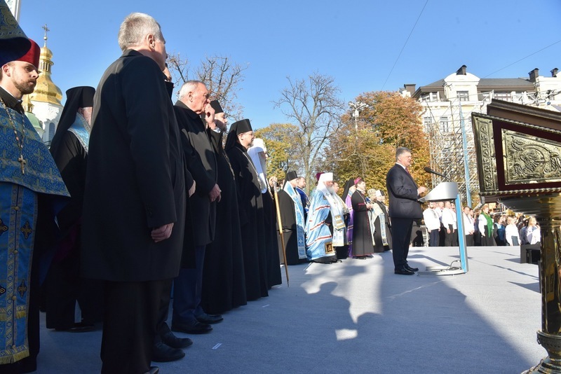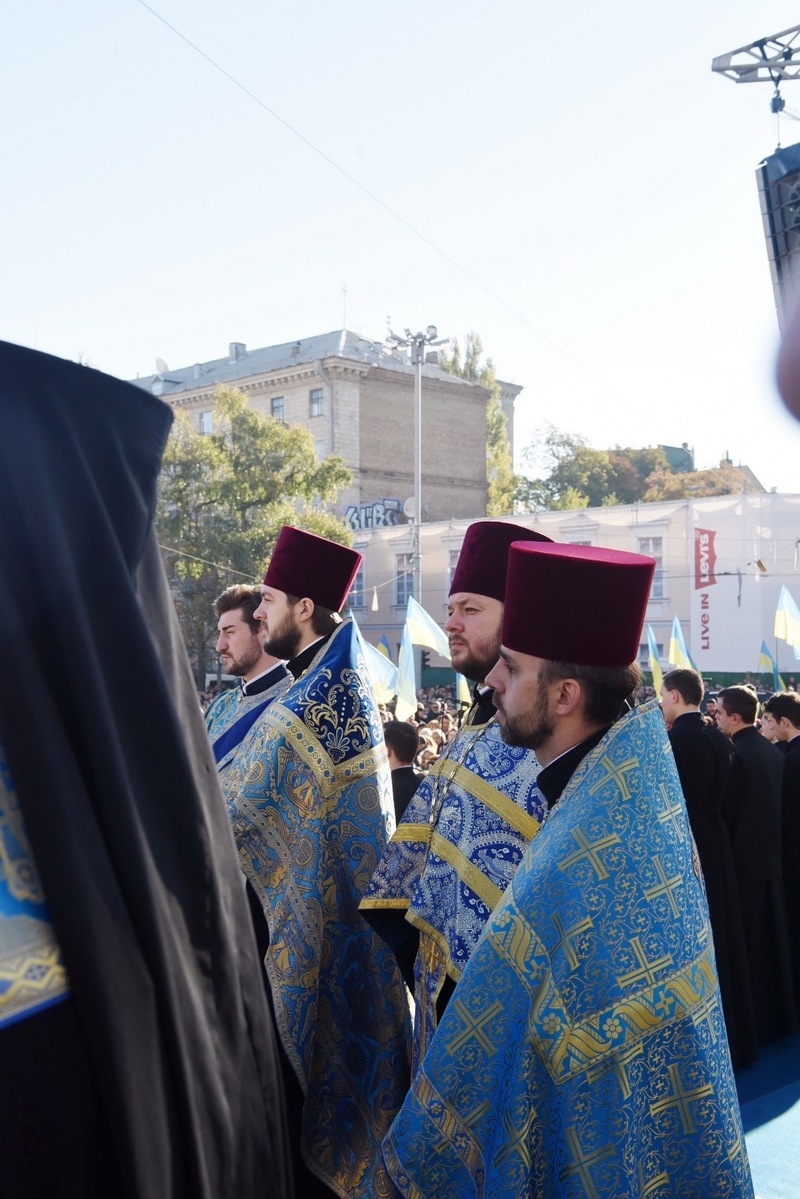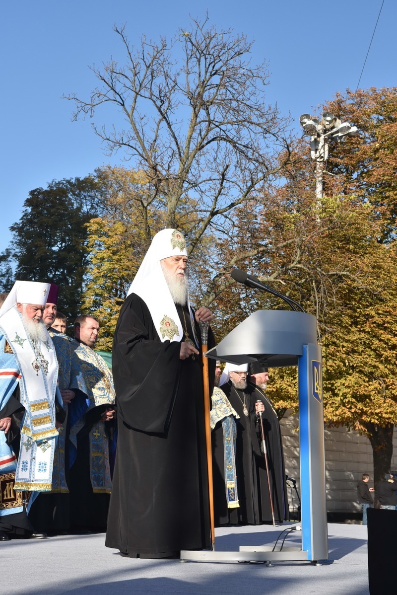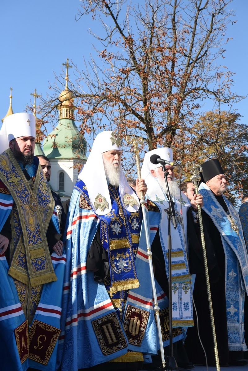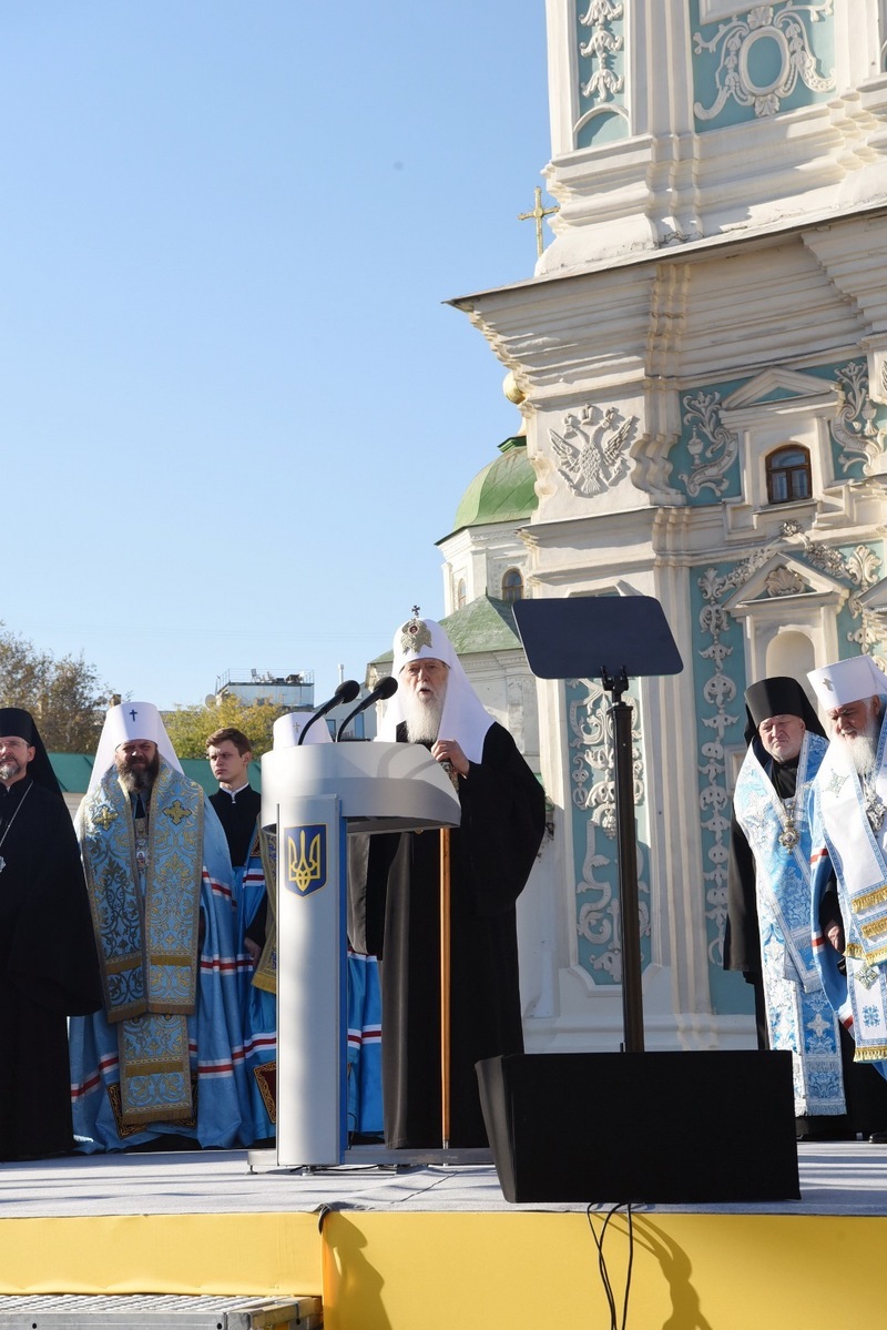 14 жовтня 2018 року, в день свята Покрови Божої Матері, Святійший Патріарх Київський і всієї Руси-України Філарет, на майдані перед Софіївським собором, взяв участь у подячному молебні за благодіяння, які Бог подає Україні та Православній Українській Церкві.