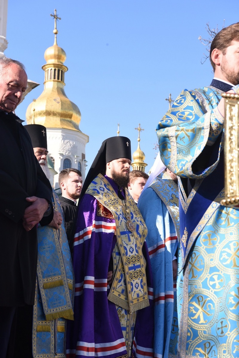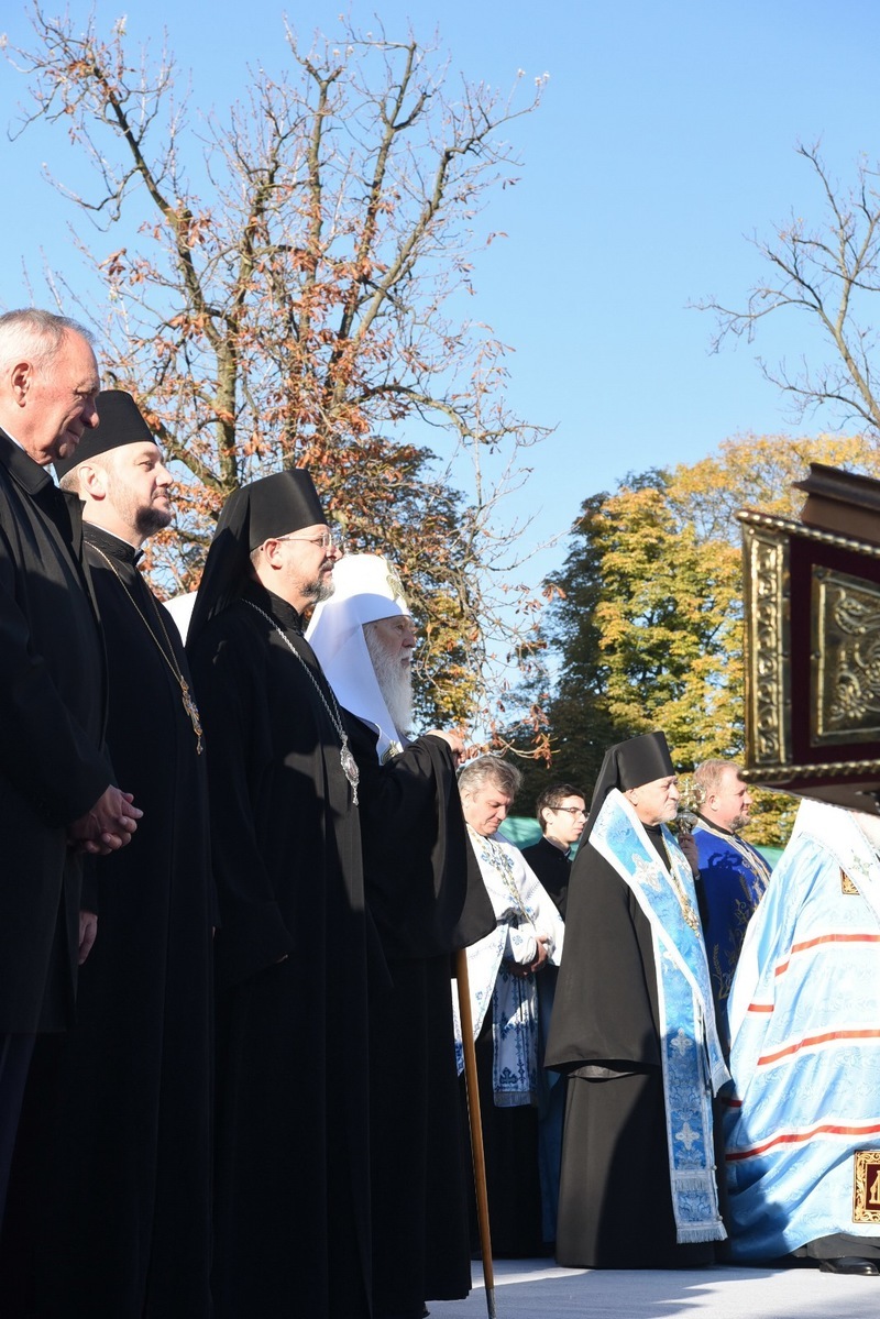 Його Святість супроводжували Патріарший намісник, митрополит Переяславський і Білоцерківський Епіфаній, митрополит Луцький і Волинський Михаїл, архієпископ Вишгородський Агапіт, архієпископ Дрогобицький і Самбірський Яків, єпископ Васильківський Лаврентій, духовенство та численні віряни.