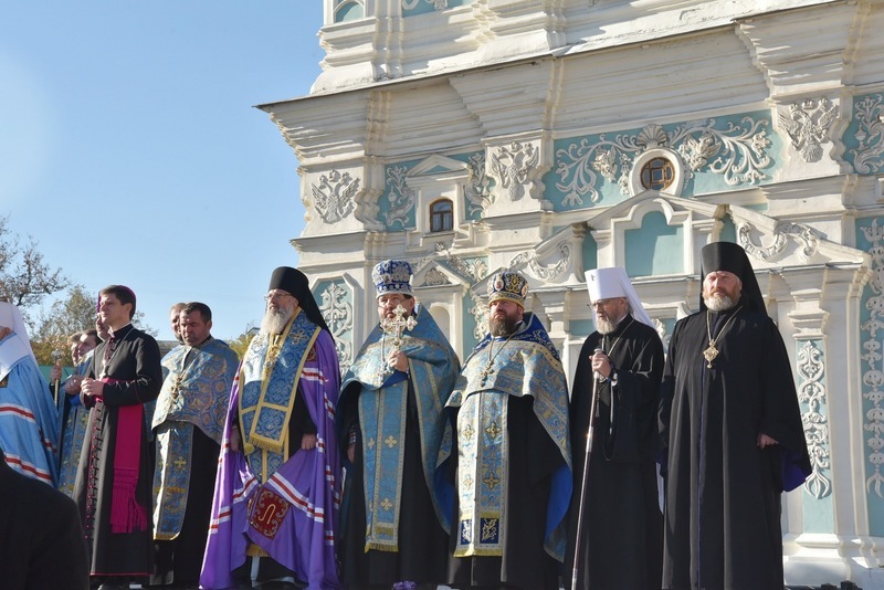 В цей урочистий день, коли ми святкуємо Покров Божої Матері, ми відчуваємо, що Божа Матір завжди покривала український народ. Вона допоможе нам і нашого ворога на сході подолати. І ми знаємо, не віримо, а знаємо, що перемога незабаром. Ще хочу подякувати особливо нашим воїнам, які показали таку любов, про яку сказав Господь Ісус Христос, що немає ніхто більшої любові, як хто душу свою покладе за друзів своїх. А скільки тисяч кращих синів і дочок України віддали своє життя за нашу волю? І ми не даремно в Гімні співаємо: “Душу й тіло ми положим за нашу свободу”. Ми дійсно покладаємо і душу, і тіло за нашу свободу. Покладаємо тому, що з нами Бог, а з нами Бог, тому що з нами правда.