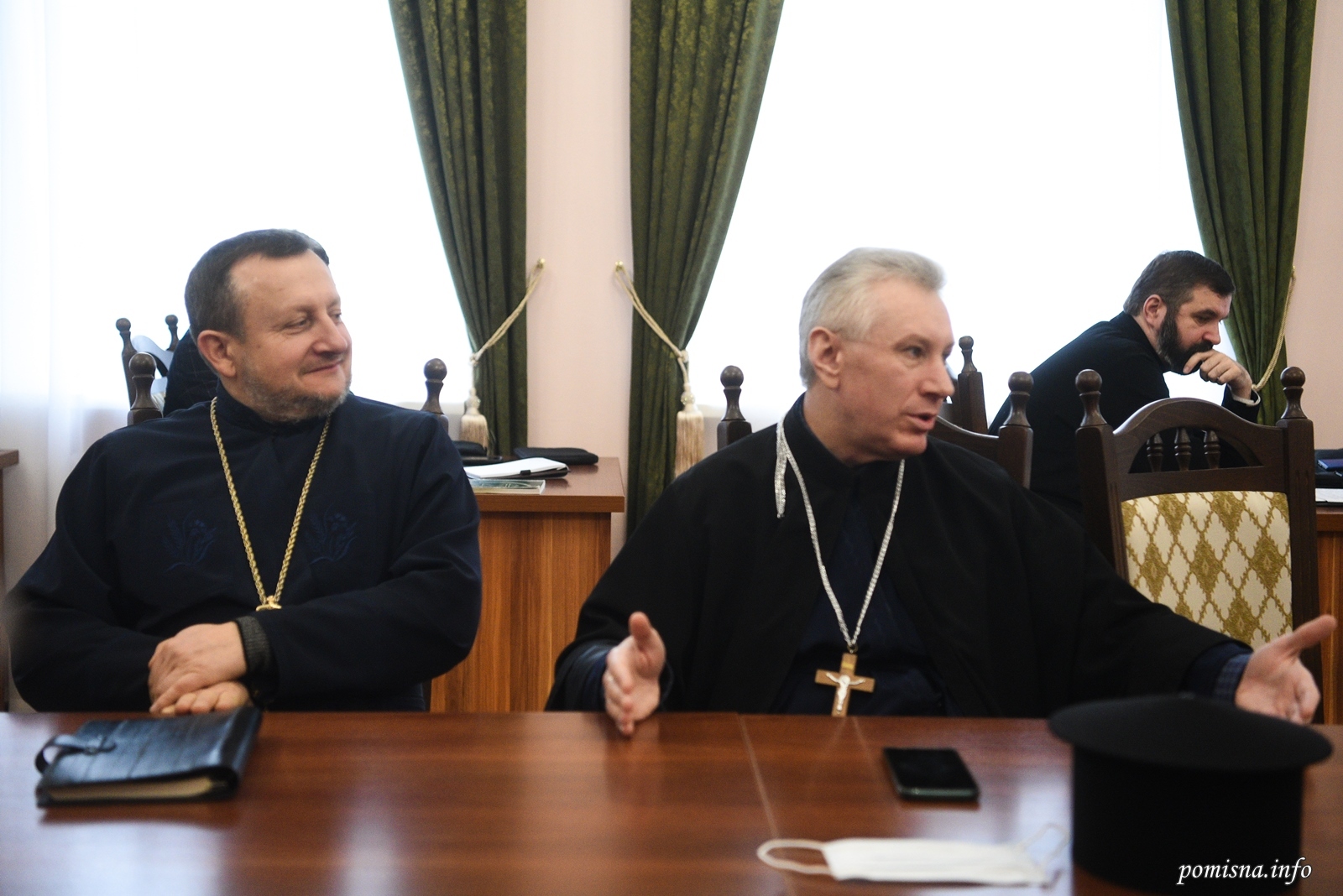 У робочій зустрічі також взяв участь почесний ректор Київської православної богословської академії Блаженніший Митрополит Київський і всієї України Епіфаній. Його Блаженство поспілкувався з професорсько-викладацьким колективом провідного духовного закладу вищої освіти Православної Церкви України та привітав ректора протоієрея Олександра Трофимлюка й усіх співробітників академії з прийдешнім Різдвом Христовим.