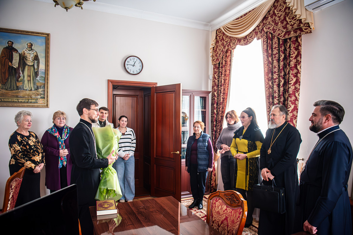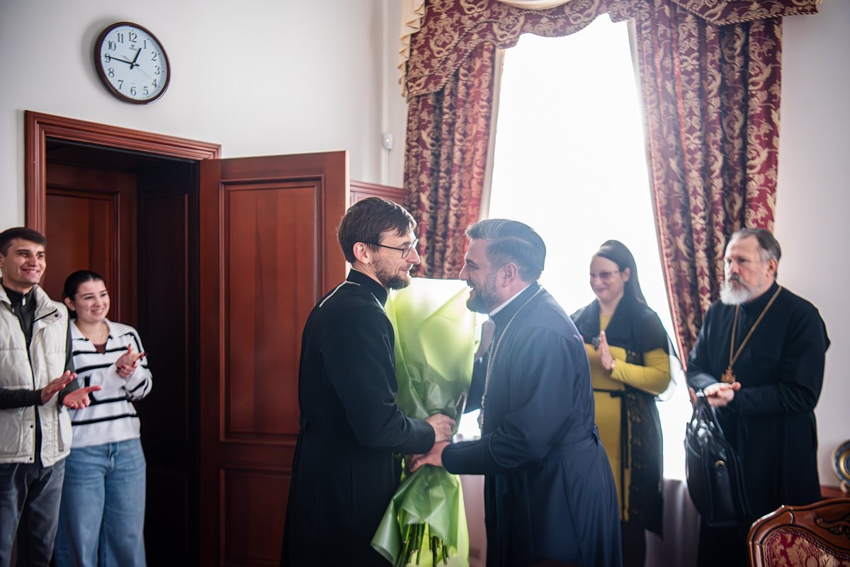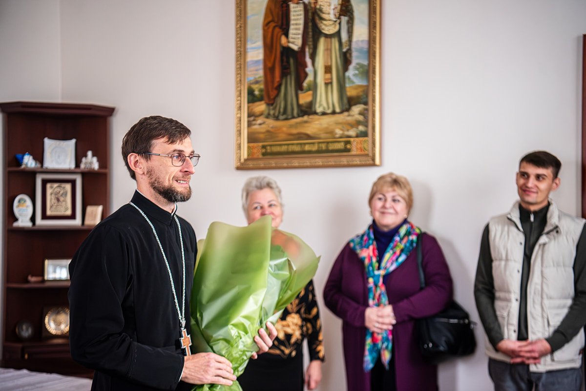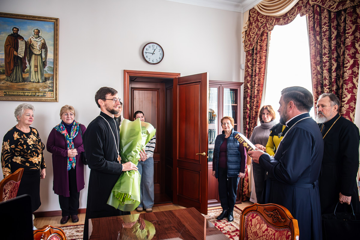 Ректор Київської православної богословської академії прот. Ярослав Романчук разом із професорсько-викладацьким колективом привітав викладача Академії прот. Михайла Альмеса з нагоди 40-річного ювілею.