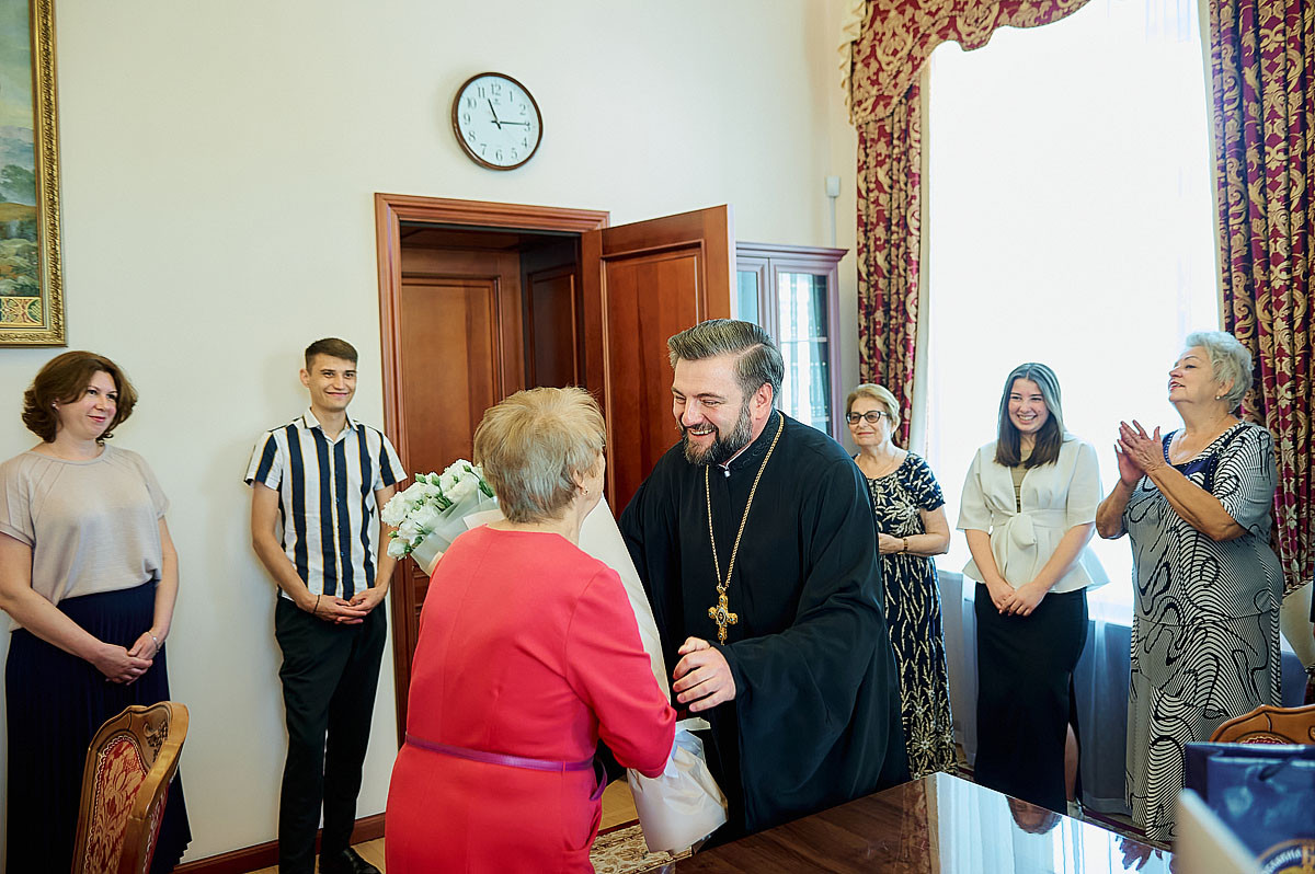 Особливо теплі слова вдячності та поваги пролунали на адресу Руденко Таїсії Григорівни, працівниці господарського відділу, яка нещодавно відсвяткувала 85-річний ювілей. Це визначна дата, що свідчить про мудрість, життєвий досвід і багаторічну відданість спільній справі. Ректор побажав Таїсії Григорівні міцного здоров’я, радості, душевного спокою та Божого благословення на кожен день життя.