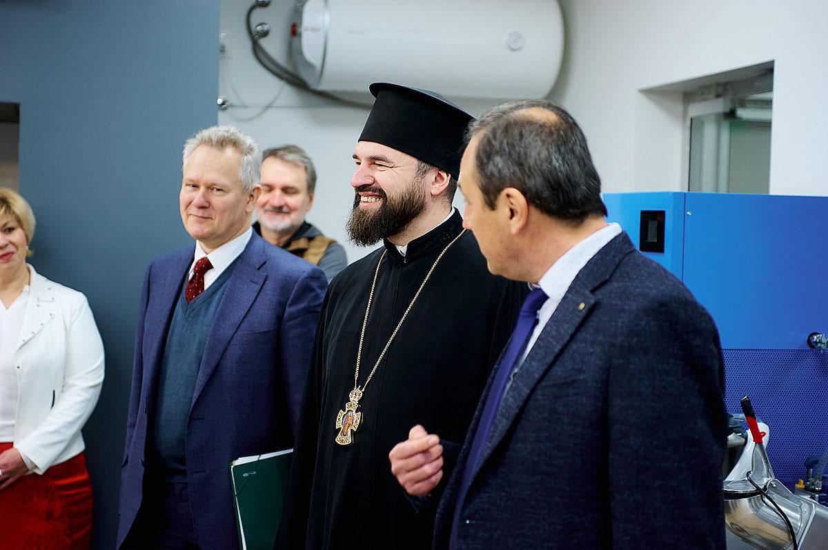 Ректор академії мав змогу оглянути кілька факультетів Університету з їх провідними кафедрами та виробничими лабораторіями. Наостанок Олександр Юхимович презентував отцю Олександру пам’ятні подарнки.