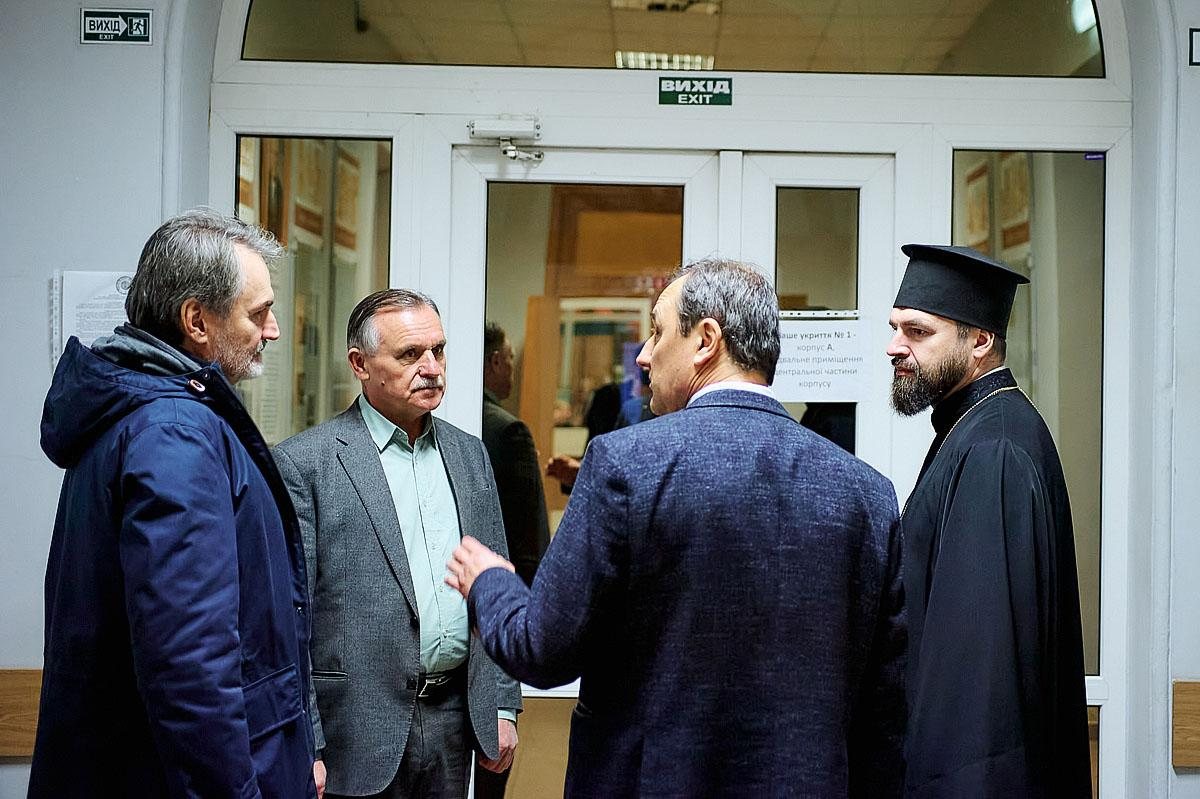 На початку зустрічі, в якій також взяв участь заступник голови Правління та голова Київської міської організації Науково-технічного товарситва харчової промисловості України Юрій Вікторович Задорожній, отець Олександр Трофимлюк розповів про історію та сучасний стан Київської православної богословської академії, про співпрацю Православної Церкви України з освітніми та науковими інституціями в Україні, про впровадження медичного та освітнього капеланства тощо, та презентував низку видань провідного закладу вищої духовної освіти України.