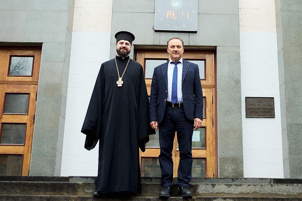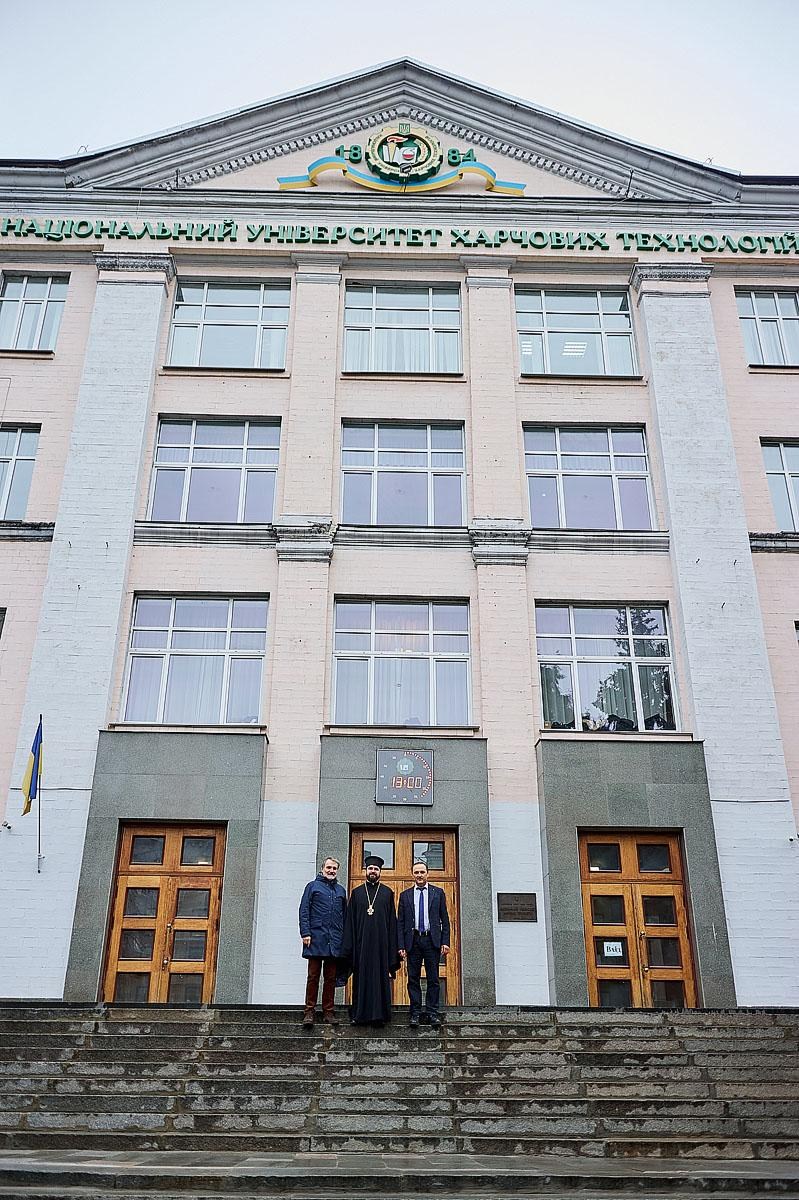 Ректор Київської православної богословської академії професор протоієрей Олександр Трофимлюк 14 листопада 2024 року відвідав Національний університет харчових технологій – потужний навчально-науковий комплекс, знаний і глибоко шанований не лише в Україні, але й далеко за її межами, де зустрівся з ректором університету, заслуженим діячем науки і техніки України, лауреатом Державної премії України в галузі науки і техніки, доктором технічних наук, професором Олександром Юхимовичем Шевченком.