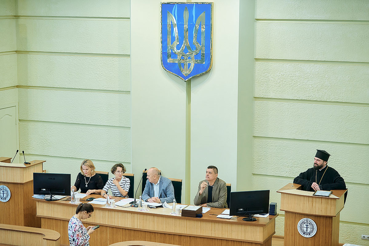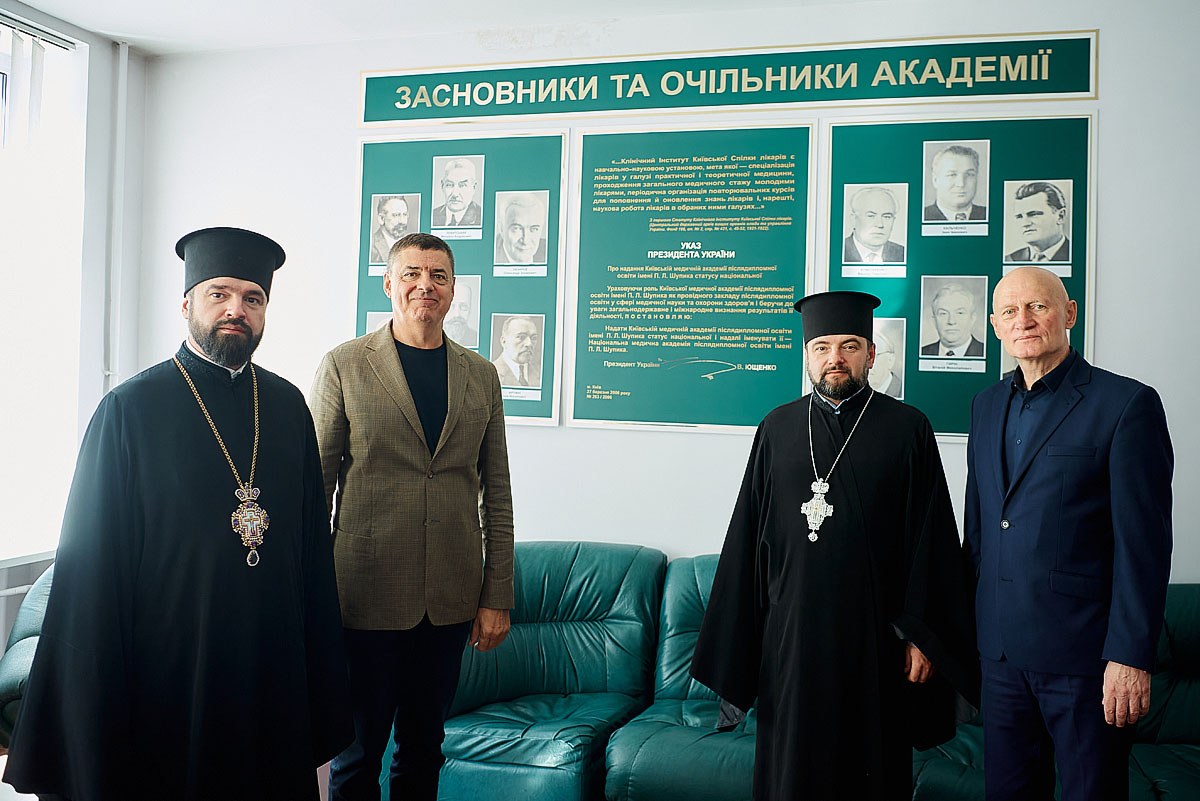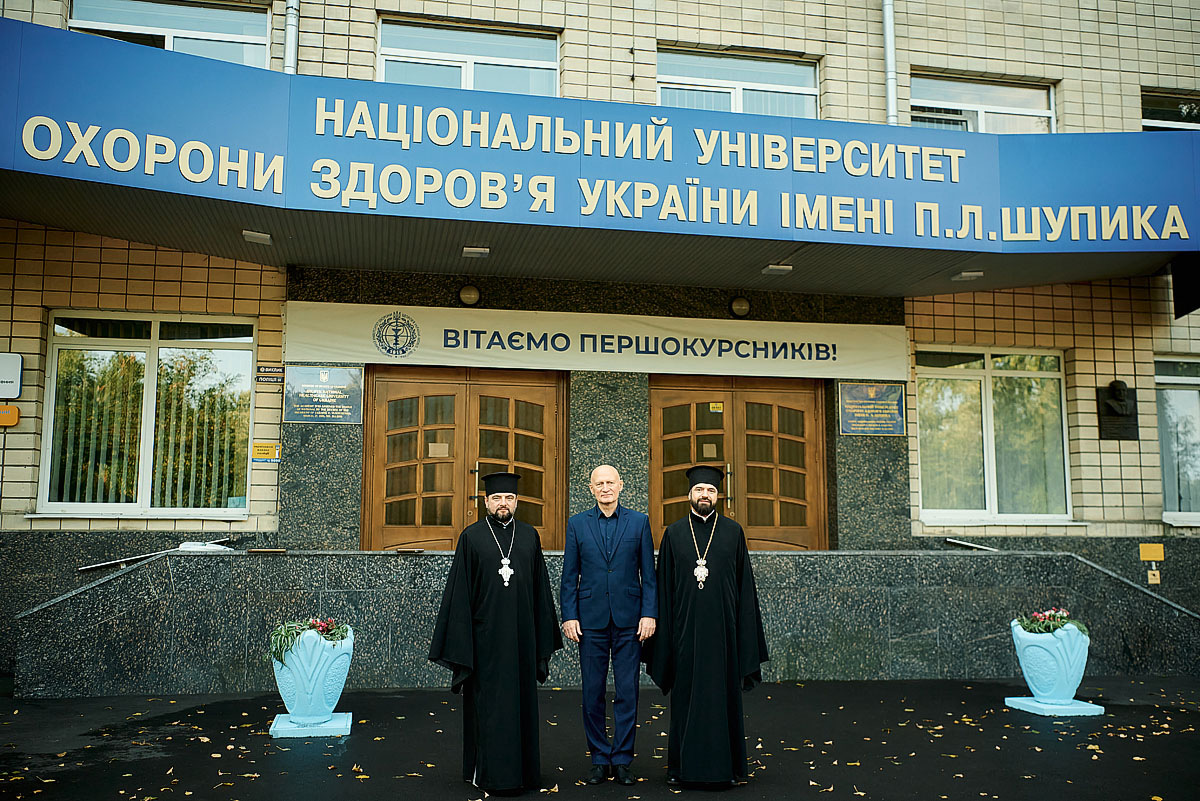 10 вересня 2025 року ректор КПБА прот. Ярослав Романчук разом із професором кафедри церковно-практичних дисциплін, головою Управління духовної освіти і богословської науки ПЦУ прот. Олександром Трофимлюком, здійснили робочий візит до Національного університету охорони здоров’я України імені П. Л. Шупика та взяли участь у засіданні Вченої ради. У рамках урочистої частини делегація Академії отримала відзнаки Університету.