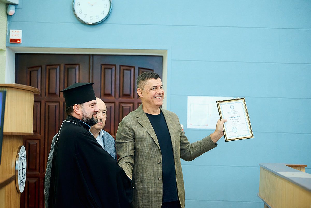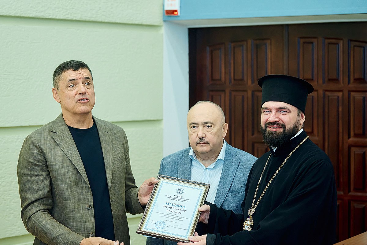Водночас ректор Академії виконав почесну місію – передав від імені Блаженнійшого Митрополита Київського і всієї України Епіфанія нагороди ректору та співробітникам Університету, які здійснили вагомий внесок у розробку спільної освітньої програми з клінічного душпастирства.