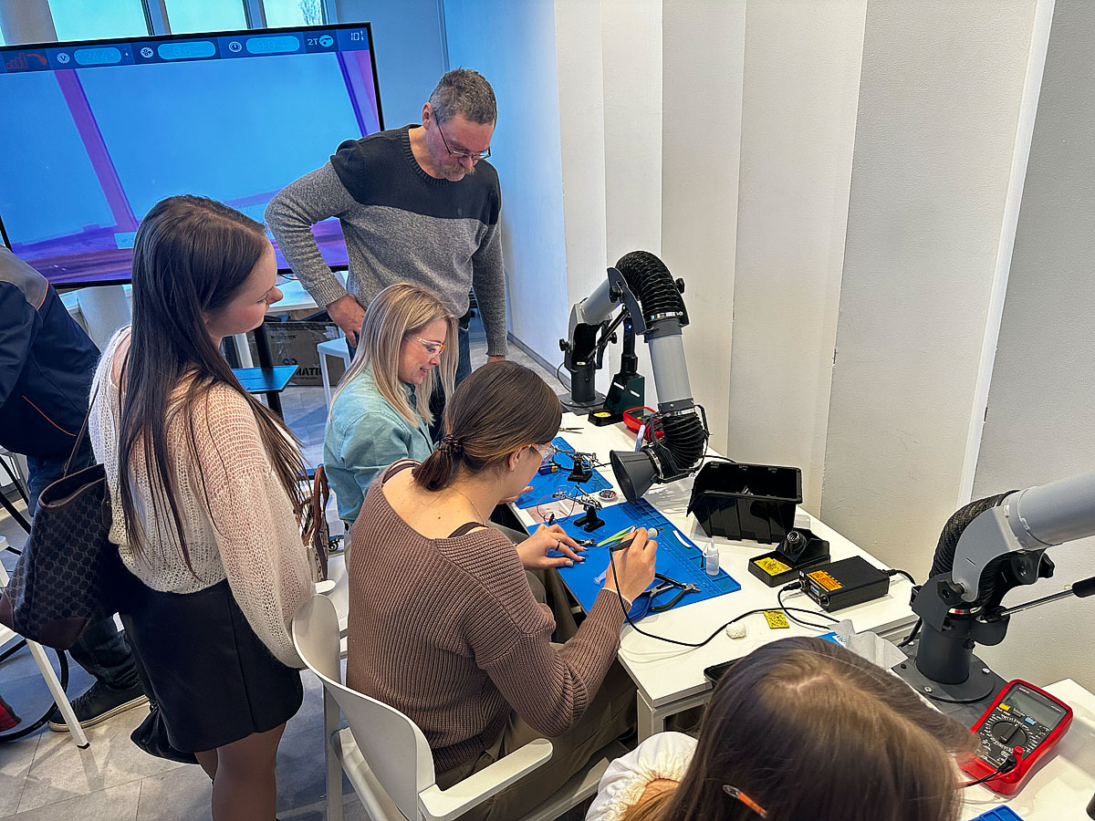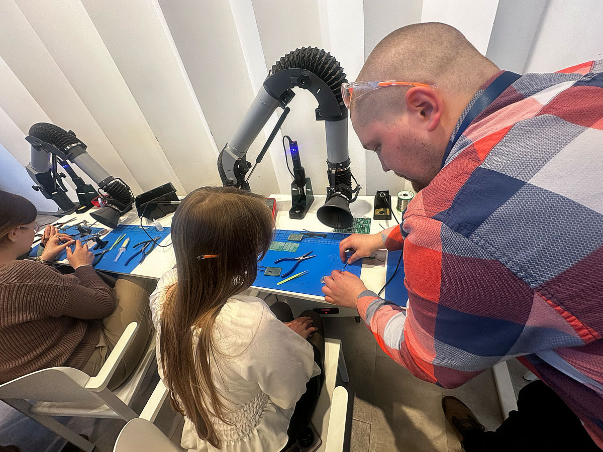 Студенти долучилися до панельної дискусії за участі представників держави та бізнесу, дізналися про можливості швидкого професійного старту, а також взяли участь у практичних воркшопах. Зокрема, спробували себе в напрямах електроніки, VR-зварювання та 3D-технологій, що дозволило не лише почути про сучасні професії, а й відчути їх на практиці.