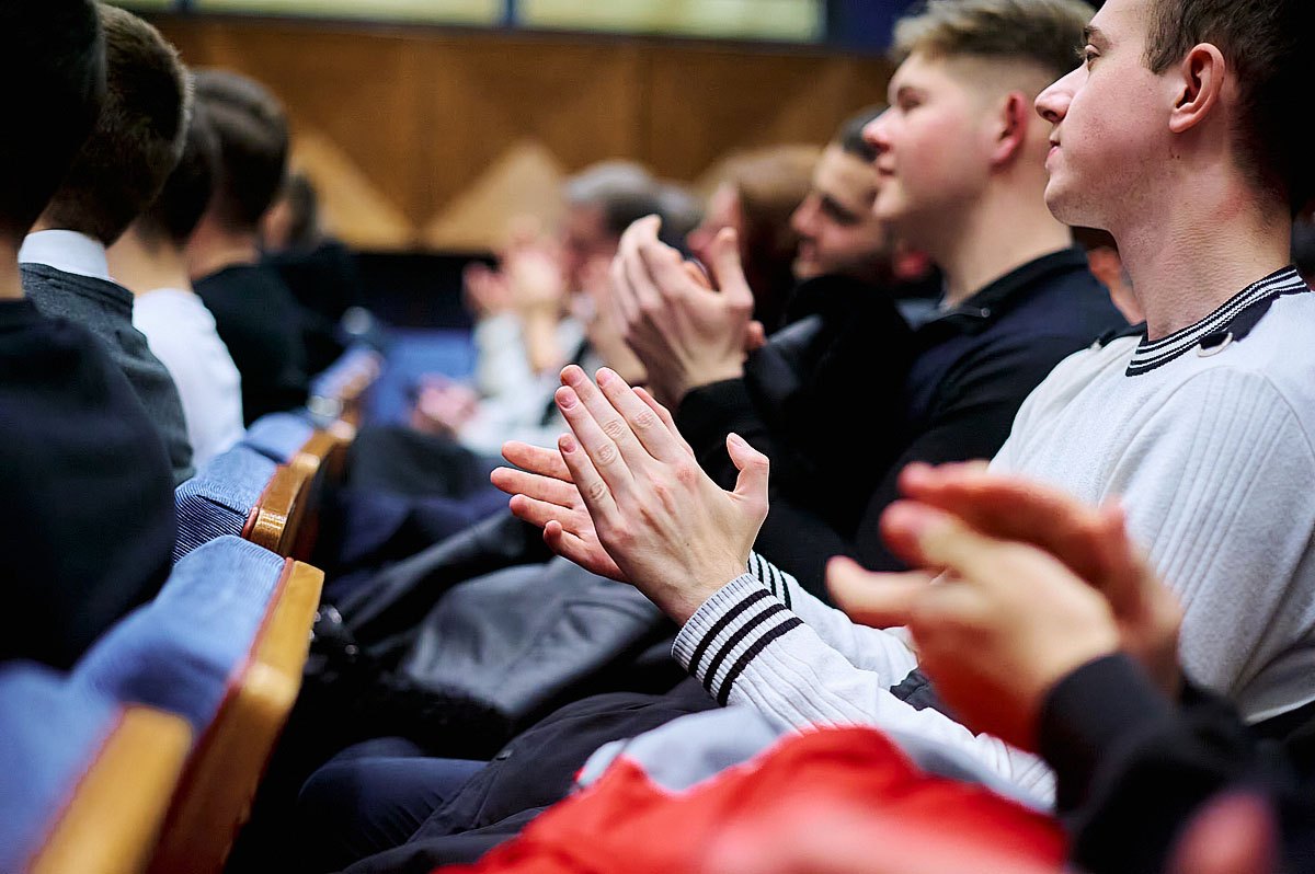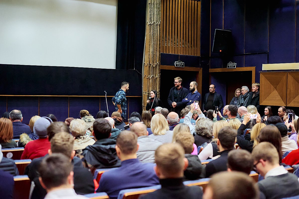Захід закінчився дружнім спілкуванням із режисером Оза Катержем та його співнатхнениками, які не словом а ділом врятували сотні життів і несуть правду про звірства росіян усьому цивілізованому світові. Студенти КПБА висловили свою подяку і молитовно-патріотичну підтримку авторам фільму, і заспівали їм многоліття.