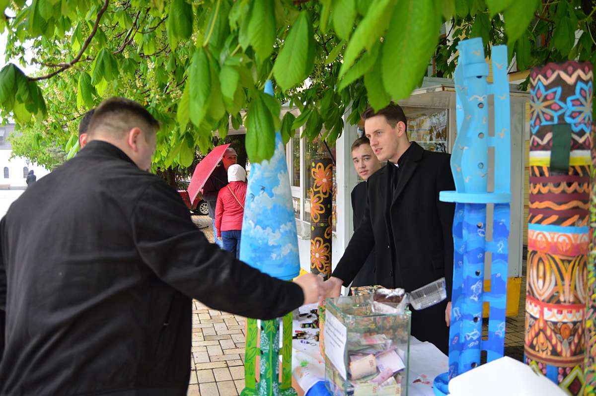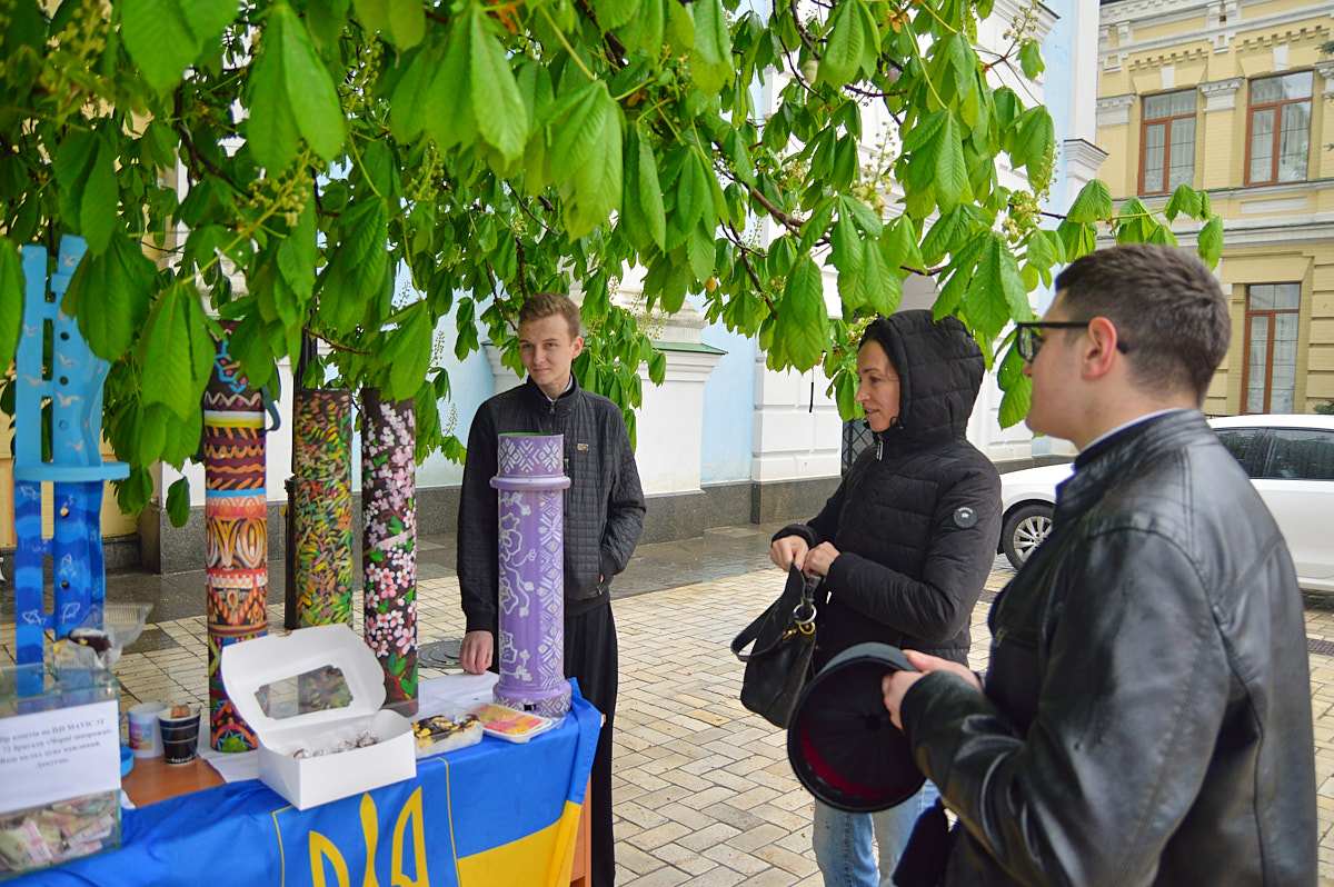 Після одного тижня праці ініціаторів, художників та просто активних студентів, 21 квітня після недільного богослужіння було розпродано першу партію виробів. На цьому ми аж ніяк не зупиняємось: протягом наступного тижня ми поповнимо наш каталог, і в недільний день чекаємо вас на території Михайлівського Золотоверхого монастиря, щоб спільними зусиллями допомогти нашому війську!