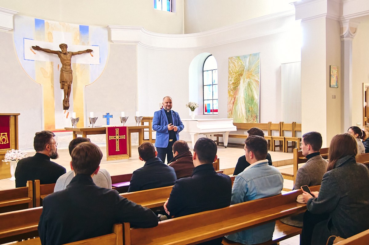 Єпископ Німецької євангелічно-лютеранської церкви України Павло Шварц поділився вступною лекцією для пізнання Євангельсько-лютеранської Церкви, історією і розвитком Церкви на теренах України та роз’яснив певні аспекти протистантського віровчення.
