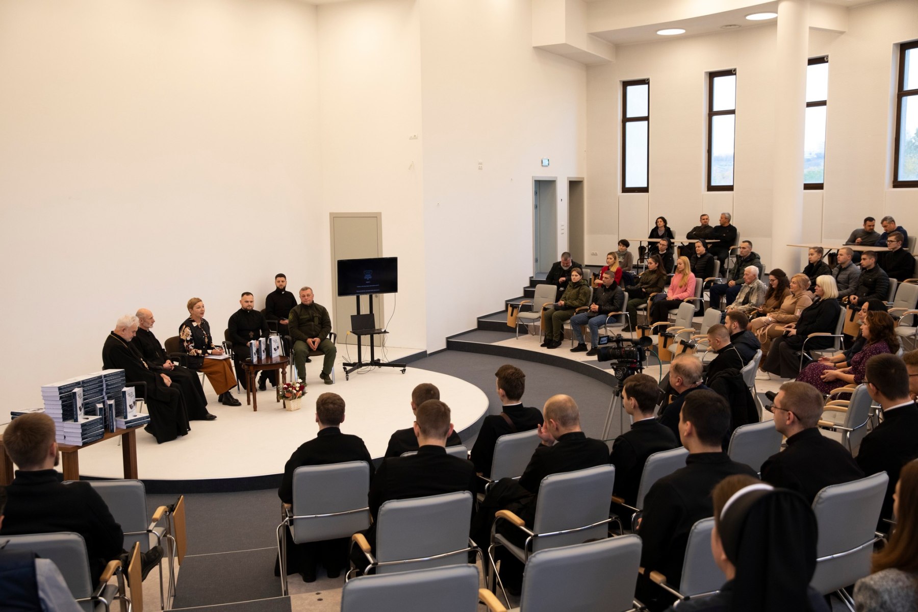 Після офіційної частини студенти КПБА та КТДС мали змогу отримати книги з автографами авторів та зробити спільну світлину з отцем Костянтином Пантелеєм та єпископом Йосифом (Міляном).