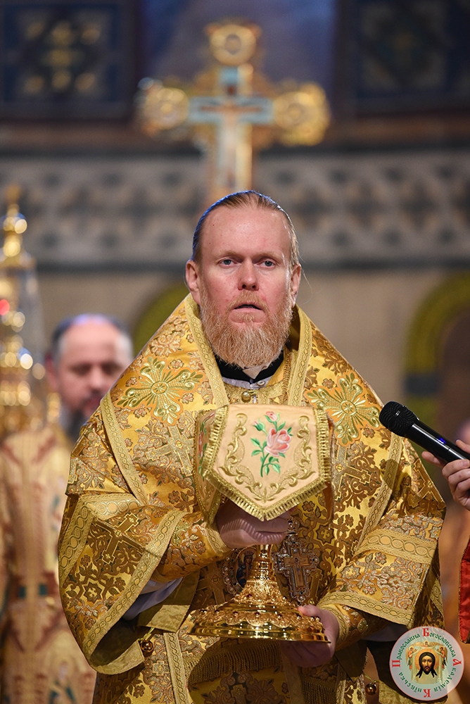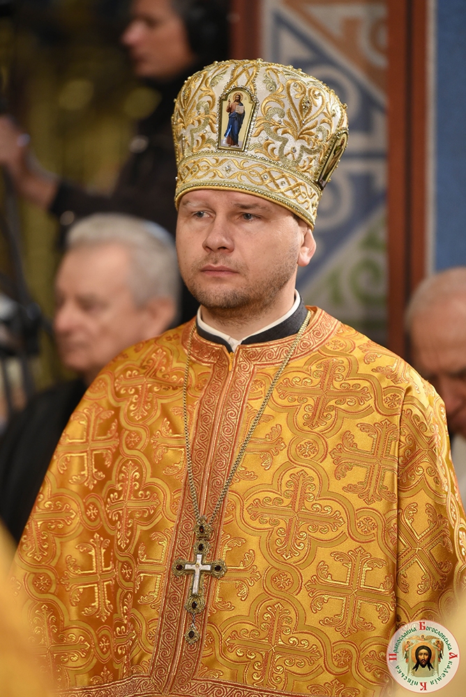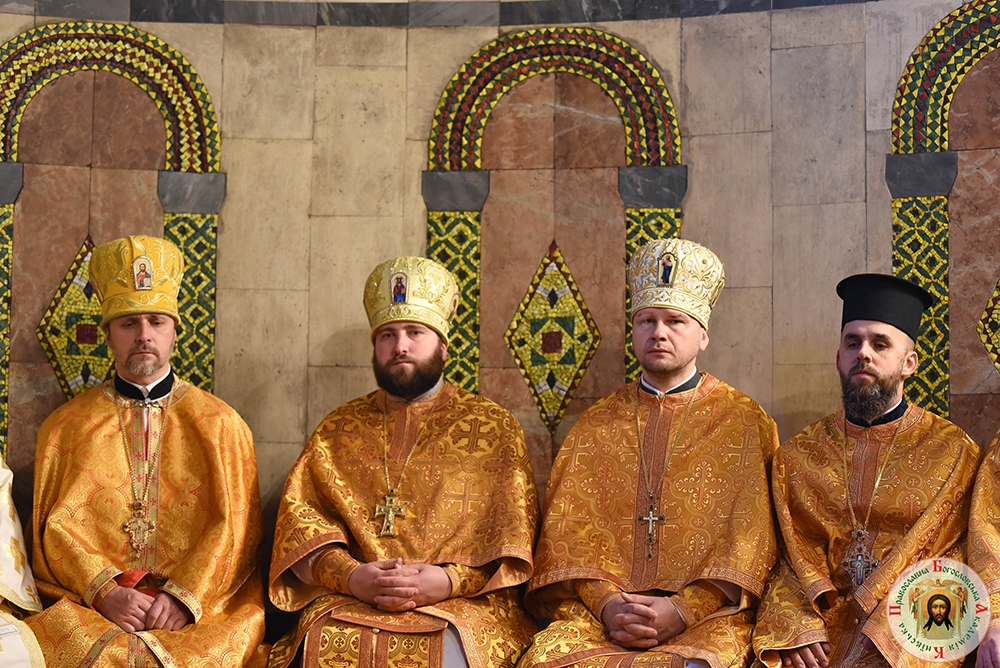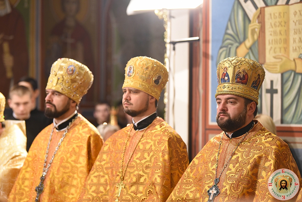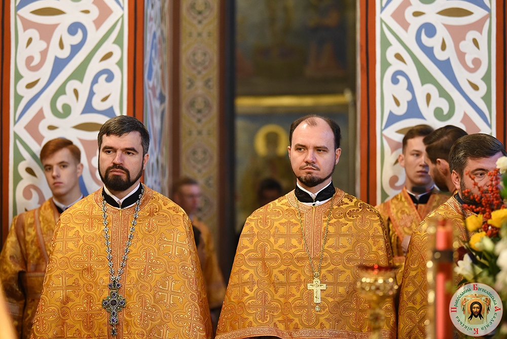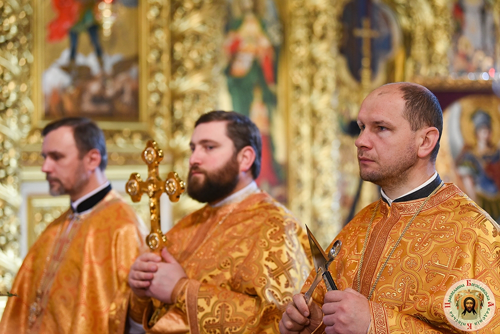 Предстоятелю співслужили архієпископ Чернігівський і Ніжинський Євстратій, намісник Золотоверхої обителі архієпископ Вишгородський Агапіт, єпископ Луганський і Старобільський Лаврентій, єпископ Бориспільський Антоній, ректор Київської православної богословської академії протоієрей Олександр Трофимлюк, викладачі та студенти у священному сані, всечесна братія монастиря та запрошене духовенство.