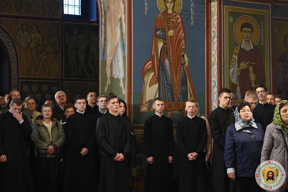 Ви всі добре знаєте, що цей храм – єдиний, який в комплексі Михайлівського монастиря залишився не зруйнованим, хоча і довгий час в ньому не звучала молитва. Подібно до зерна, кинутого в землю, він чекав належного часу, щоби прорости, заколоситися і дати великий плід. Бо з нього розпочалося відродження цієї обителі, він став духовним світильником для багатьох генерацій майбутніх пастирів, що здобували тут духовну освіту, набували практичного досвіду богослужіння і церковного життя.