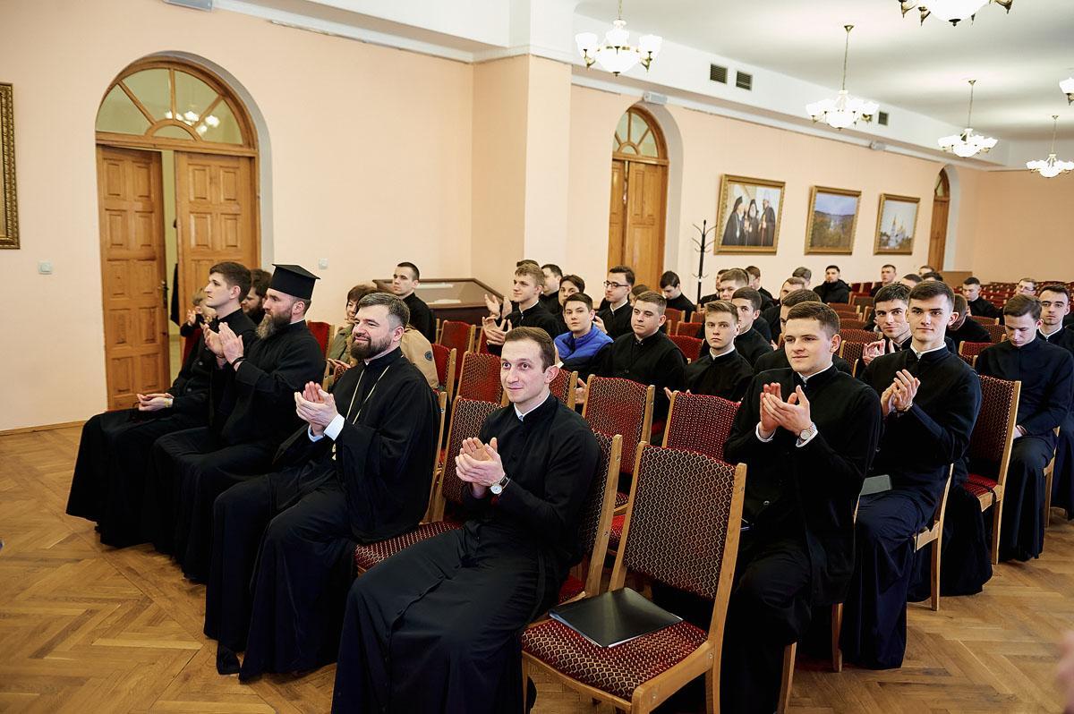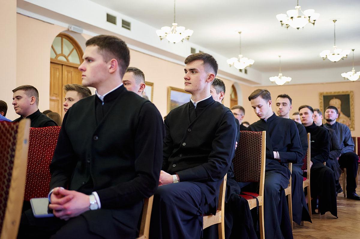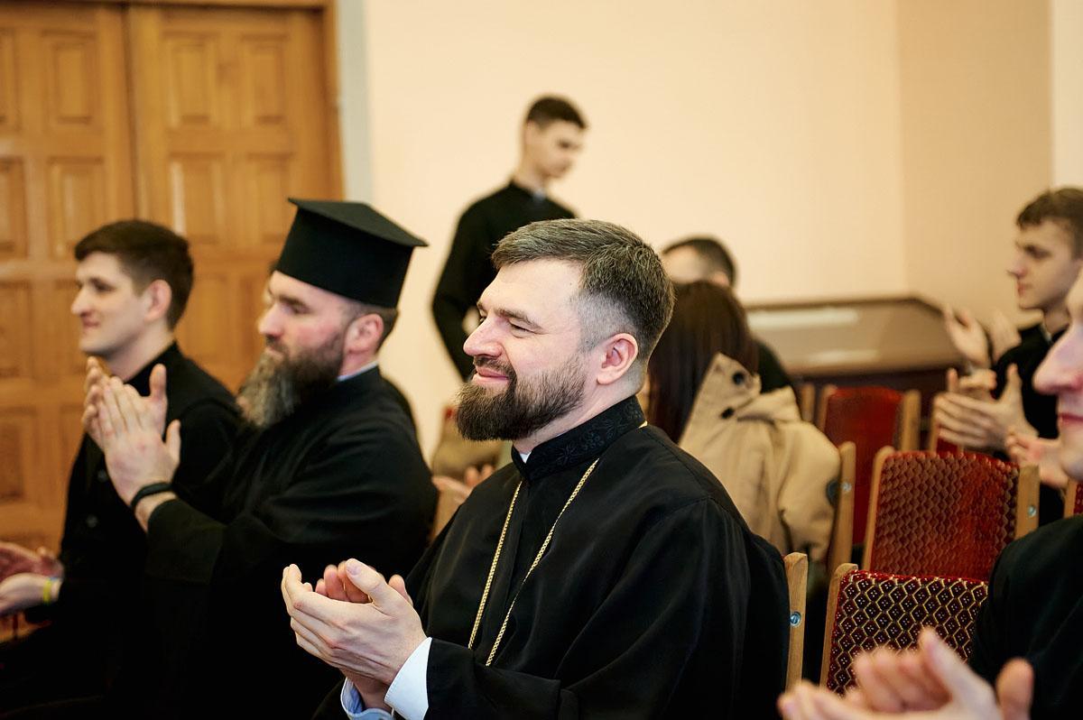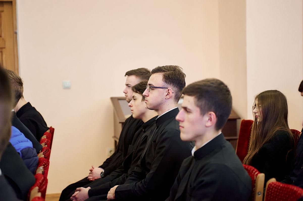 Урочистості розпочалися з молитви до Святого Духа та співу вічної пам’яті усім загиблим під час війни, які навчали та навчалися у столичному закладі вищої духовної освіти.