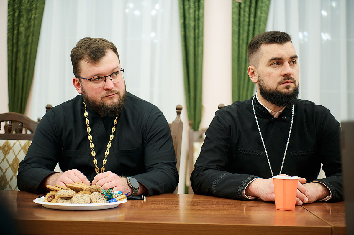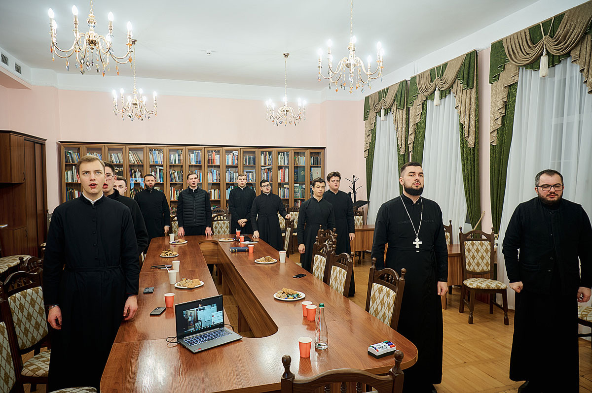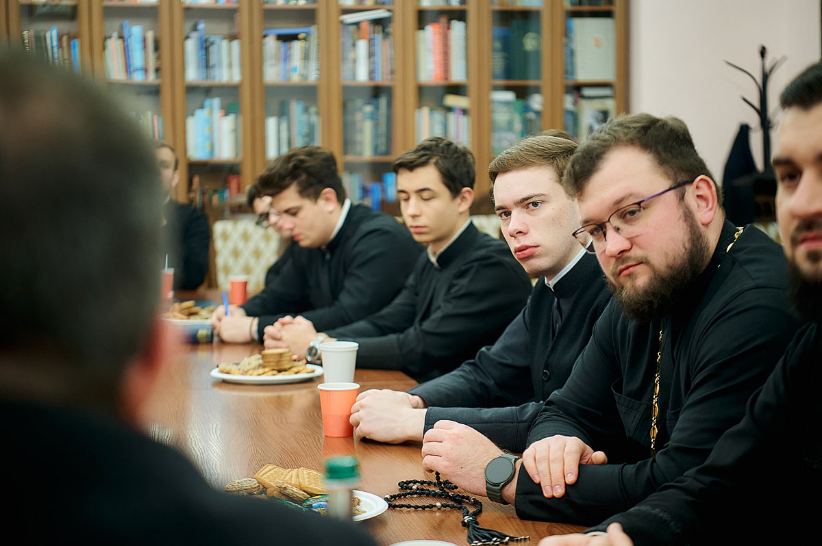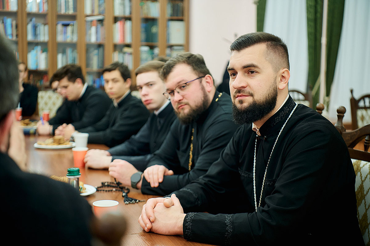 На студіях зі студентами зустрівся ієрей Іван Гошовський — викладач кафедри Священного Писання КПБА та священник храму святителя Миколая Чудотворця ПЦУ м. Запоріжжя. Отець Іван навчався на богословському факультеті Університету Аристотеля в Салоніках та має ґрунтовне дослідження, присвячене Другому апокаліпсису Якова з бібліотеки Наг-Хаммаді.