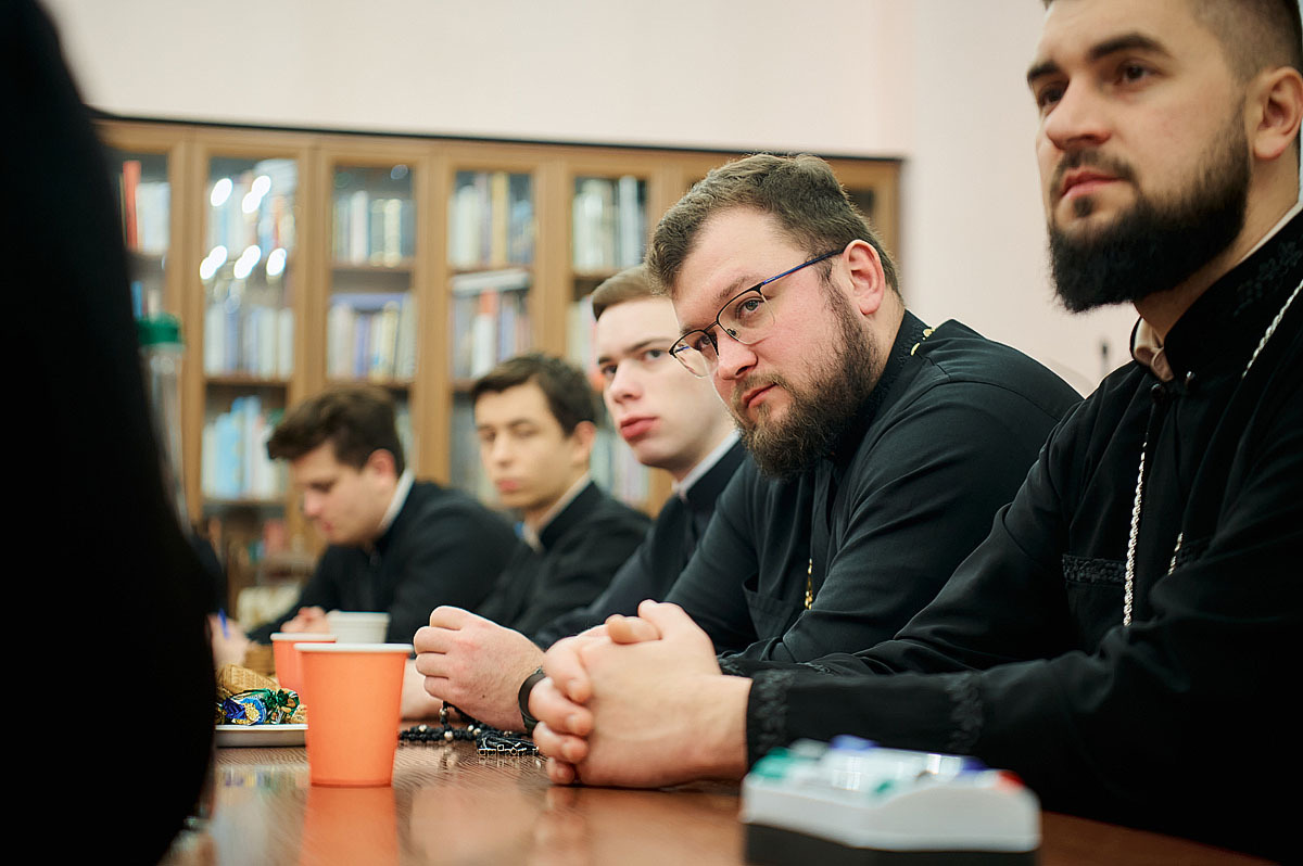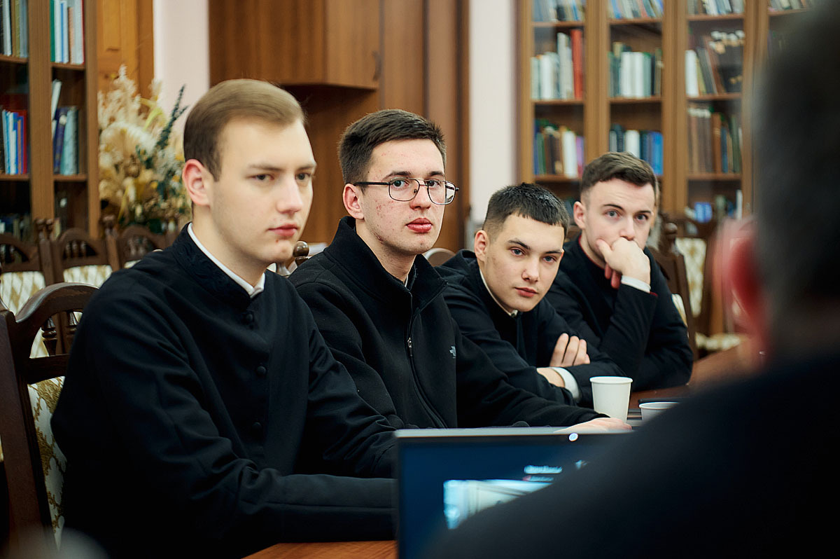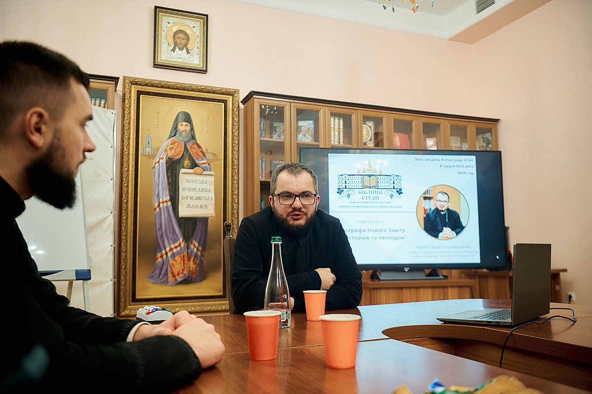 Зустріч була присвячена темі: «Апокрифи Нового Завіту: між історією та легендою». Під час обговорення йшлося про природу апокрифів, їх походження та класифікацію, про найпоширеніші апокрифічні твори, а також про критерії, за якими можна розпізнати відверті підробки та автентичні тексти. Студенти з великим зацікавленням брали участь у дискусії, ставили запитання та ділилися власними спостереженнями.