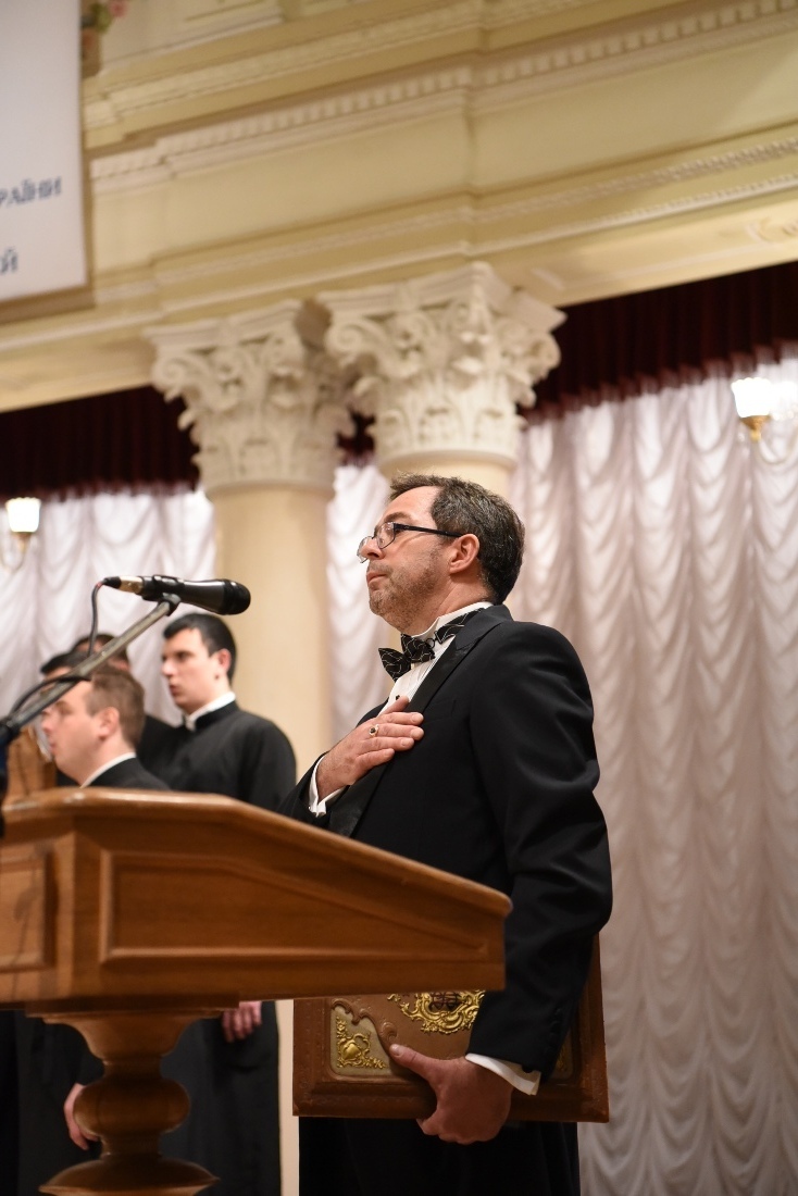 Розпочалися урочистості Державним Гімном України та молитвою “Боже великий, єдиний” у виконанні хору Київської православної богословської академії під керівництвом регента Надії Купчинської.