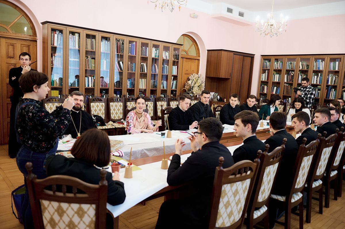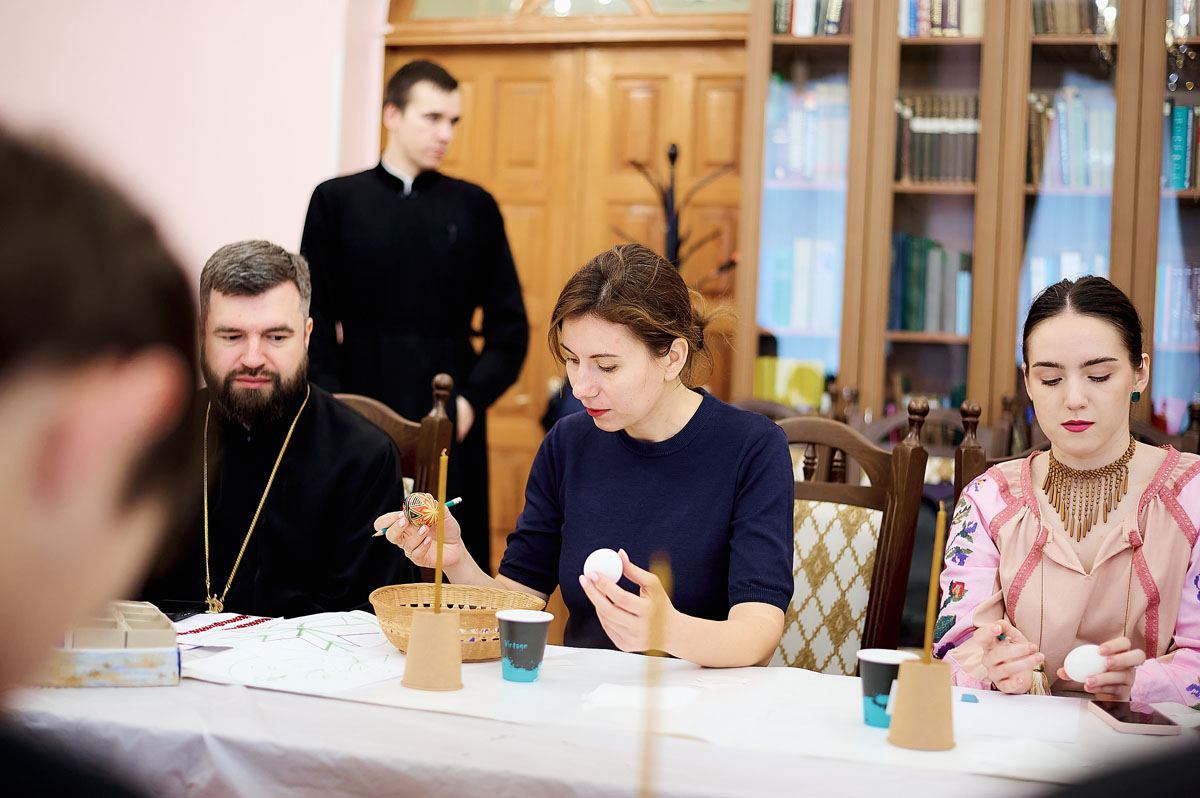 За участі ректора академії професора протоієрея Олександра Трофимлюка тренінг у конференц-залі академії провела викладач кафедри всесвітньої історії університету Марія Відейко. Учасники заходу не тільки осягнули ази українських традицій із розпису великодніх писанок, але й почули значення символів, які малювали на своїх писанках.